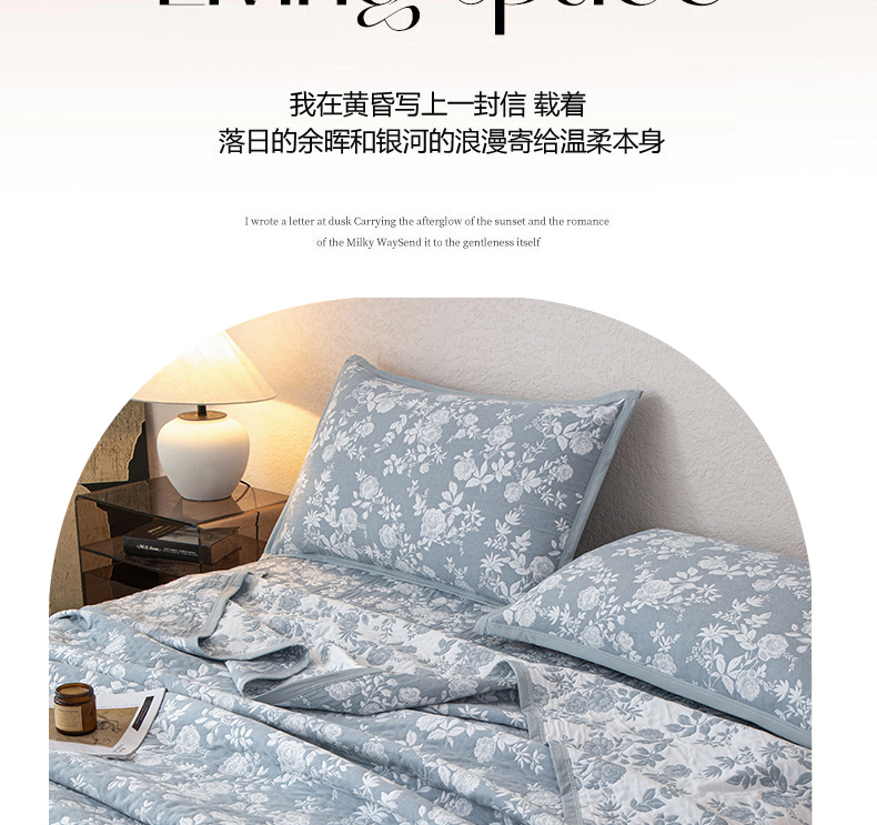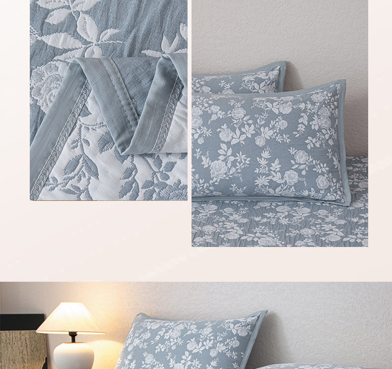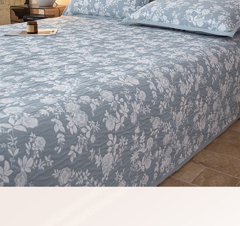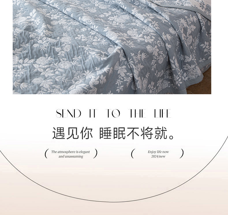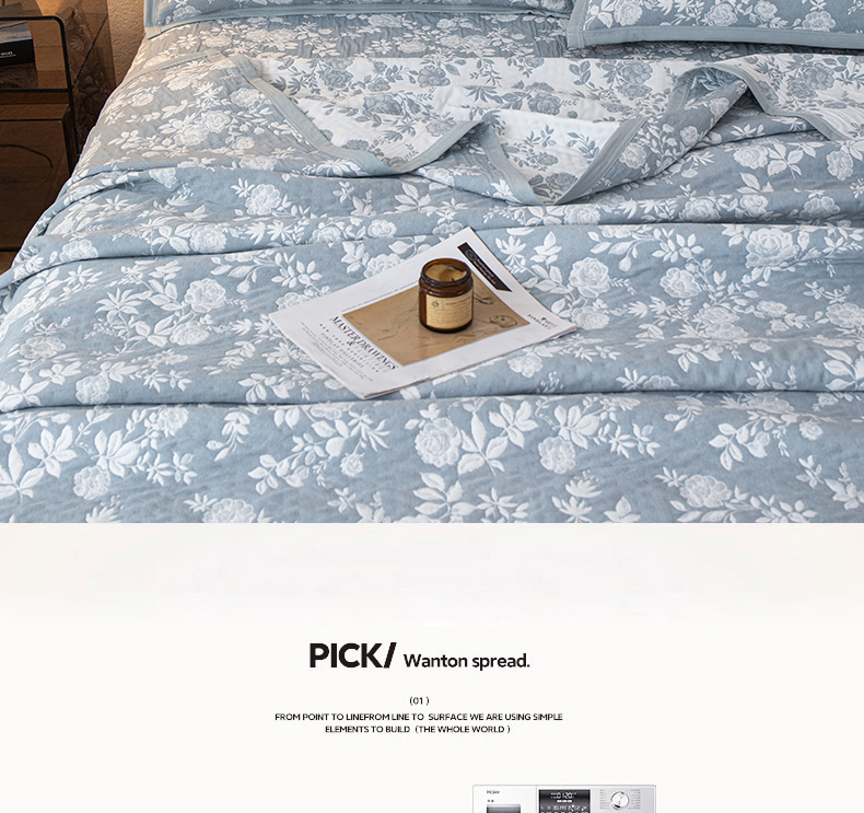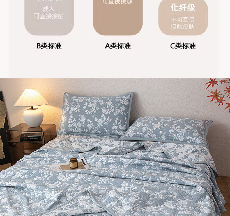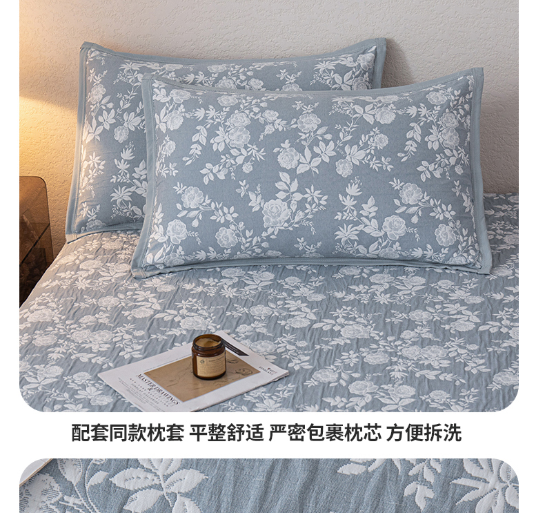 商品名称:萌飞 2025新款A类三层纱纱布毛巾被床盖 慕白-碟翅蓝