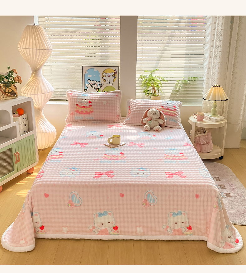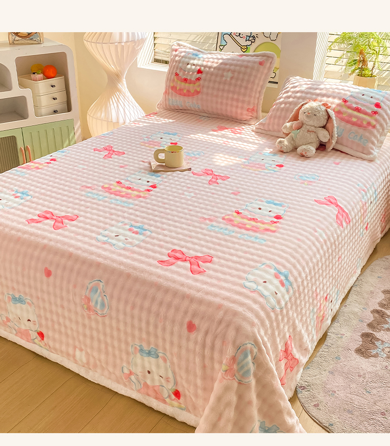• 91家纺网 家纺一手货源 找家纺 眠势力 2025新款暖绒泡泡床单冬季保暖被单牛奶绒床单罩 樱桃猫咪【暖绒泡泡床单】