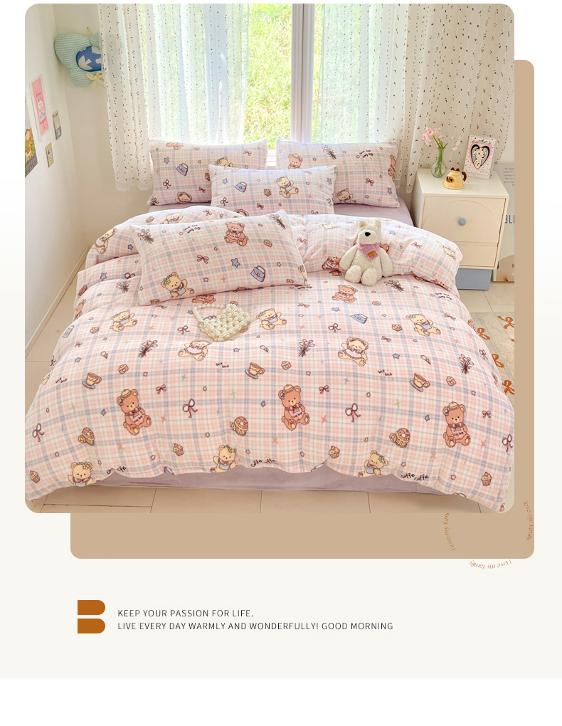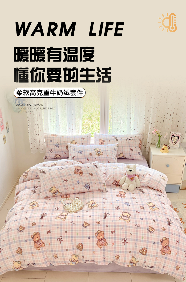 当前位置: 91家纺网 > 商品网购 > 床品套件 > 四件套 > 牛奶绒四件套 > 麦伦家居 2025新款双面200g牛奶绒四件套 小熊甜甜圈
