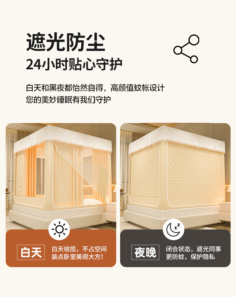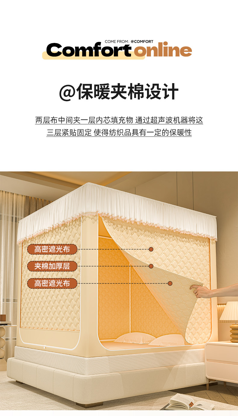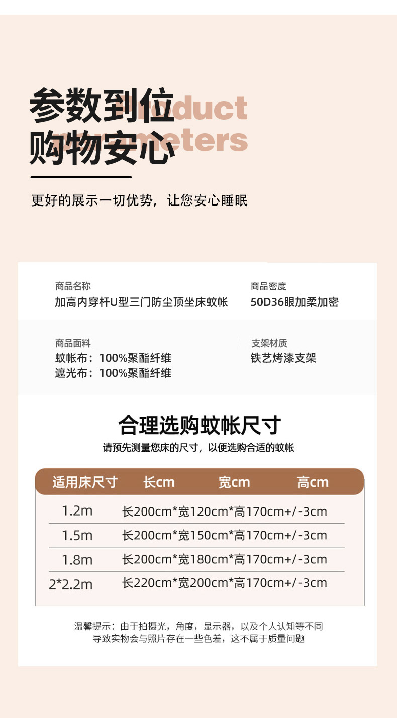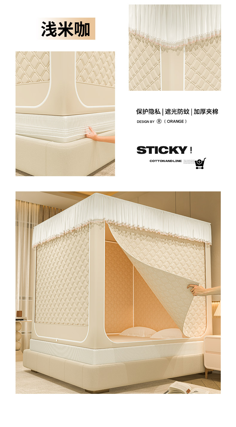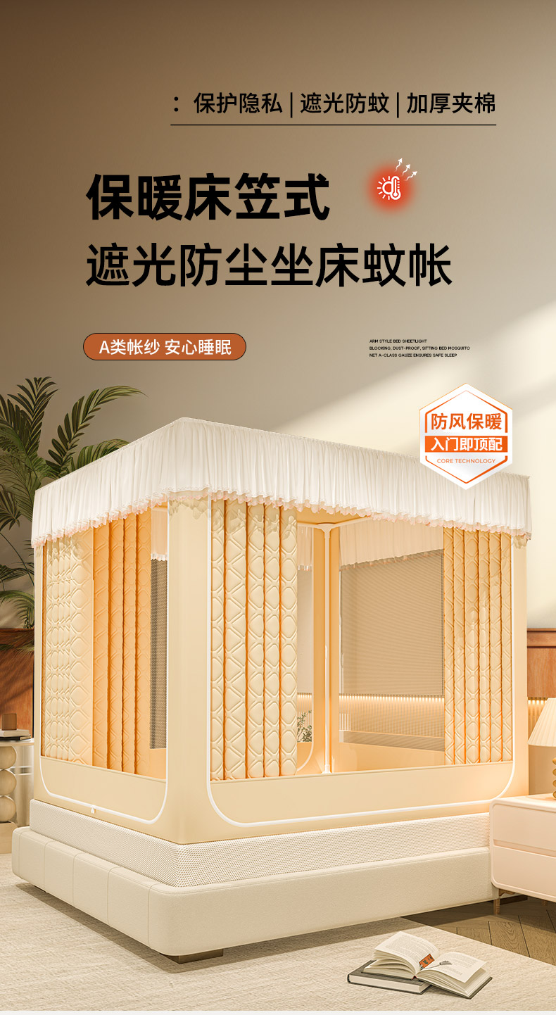 当前位置: 91家纺网 > 商品网购 > 床上用品 > 蚊帐 > 坐床式蚊帐 > 海虹蚊帐 2025新款加高内穿U型三门2402保暖款夹棉防尘顶坐床蚊帐 米色
