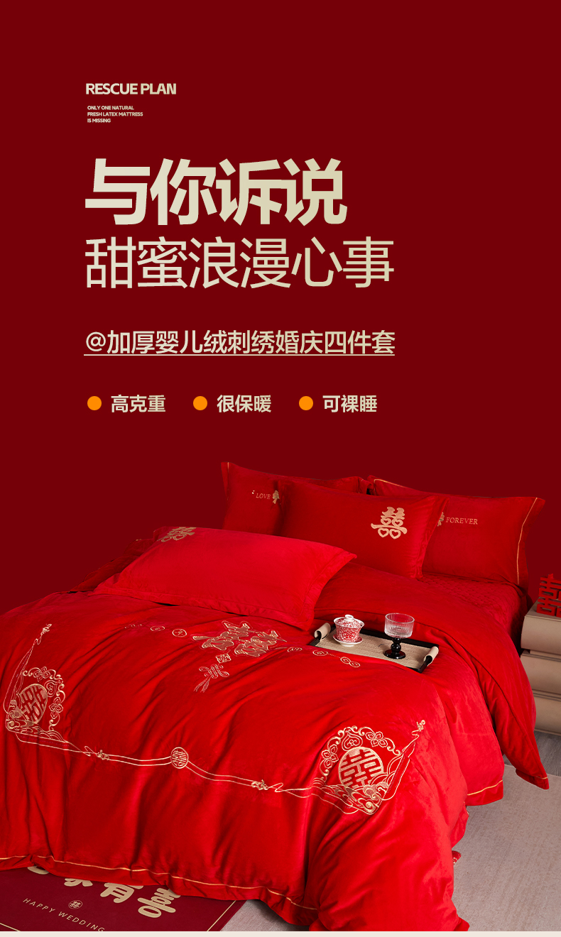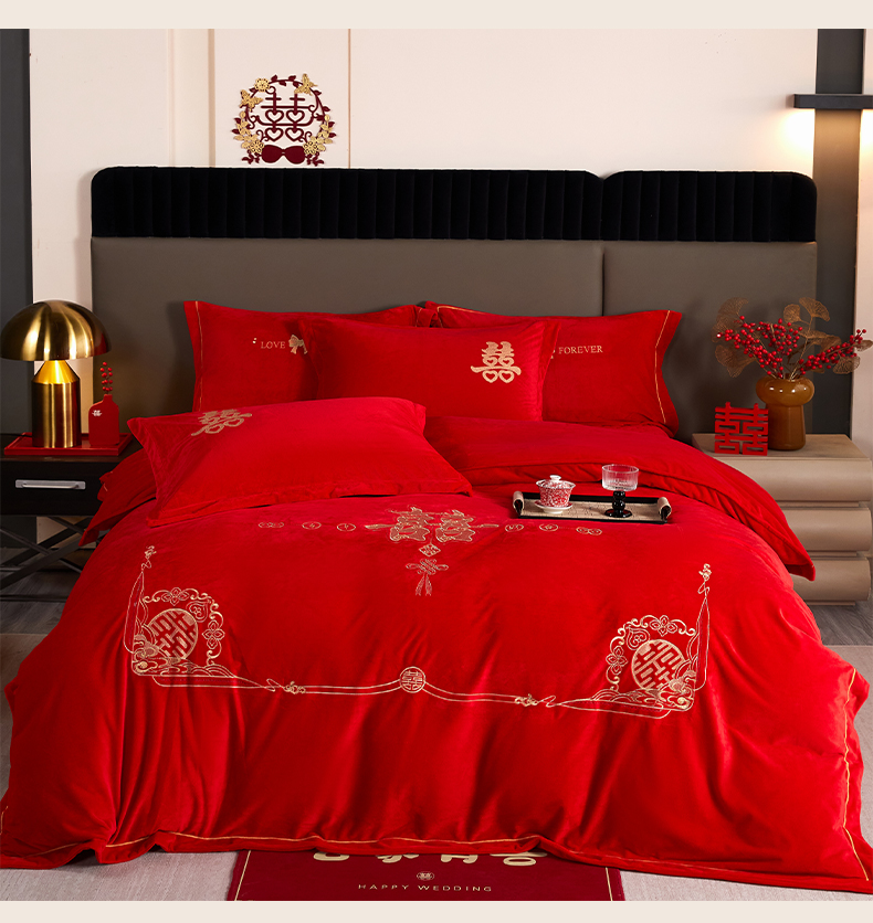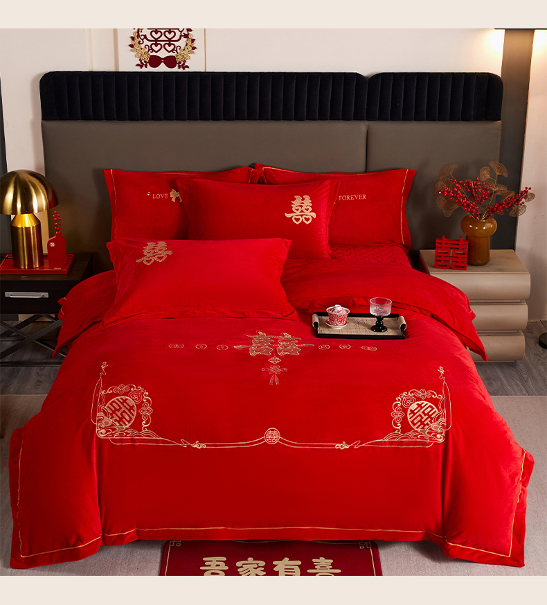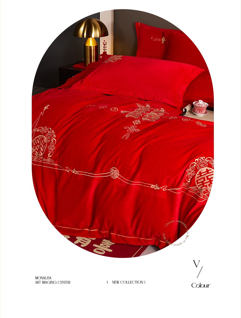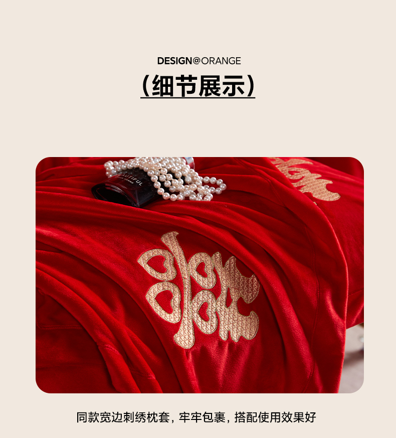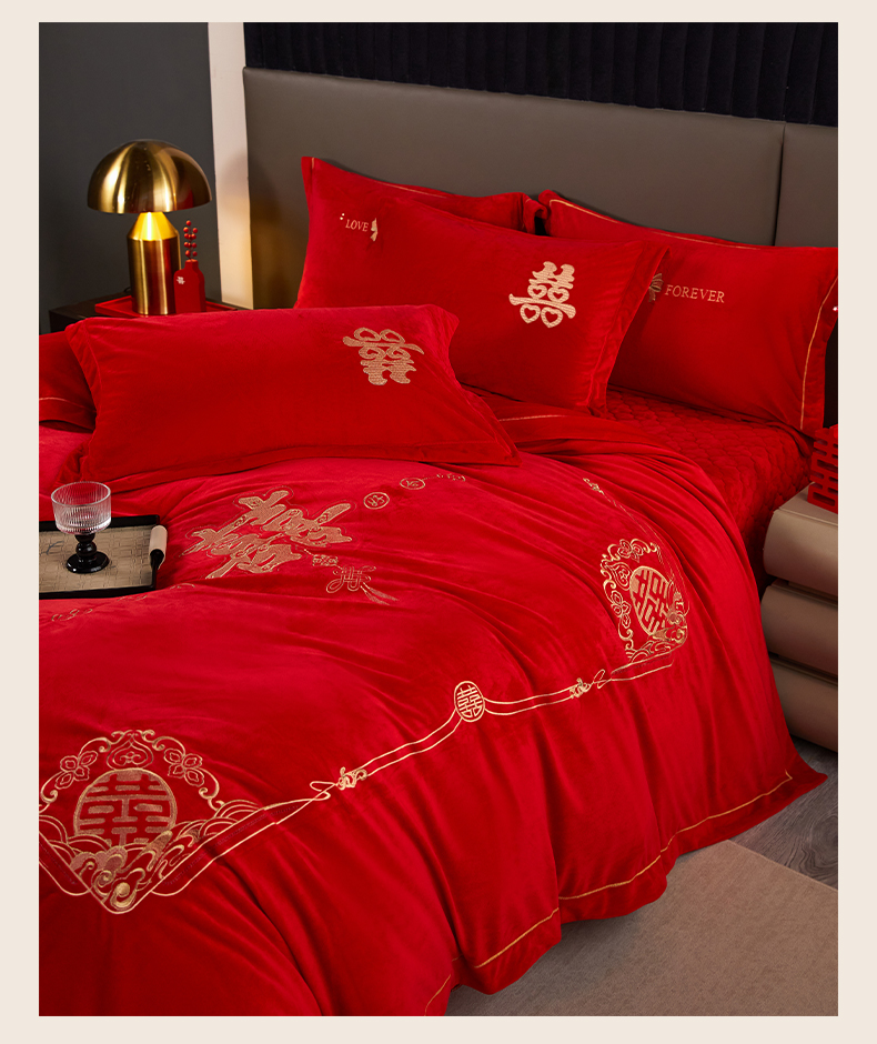 商品名称:默忆 2025新款婴儿绒刺绣婚庆四件套 家家有喜