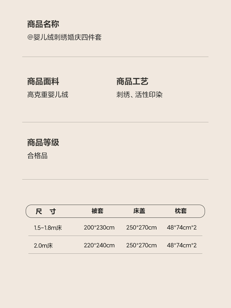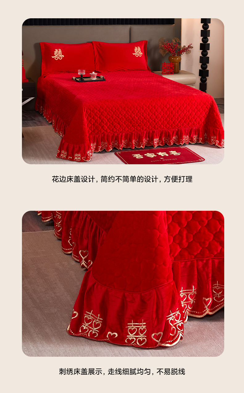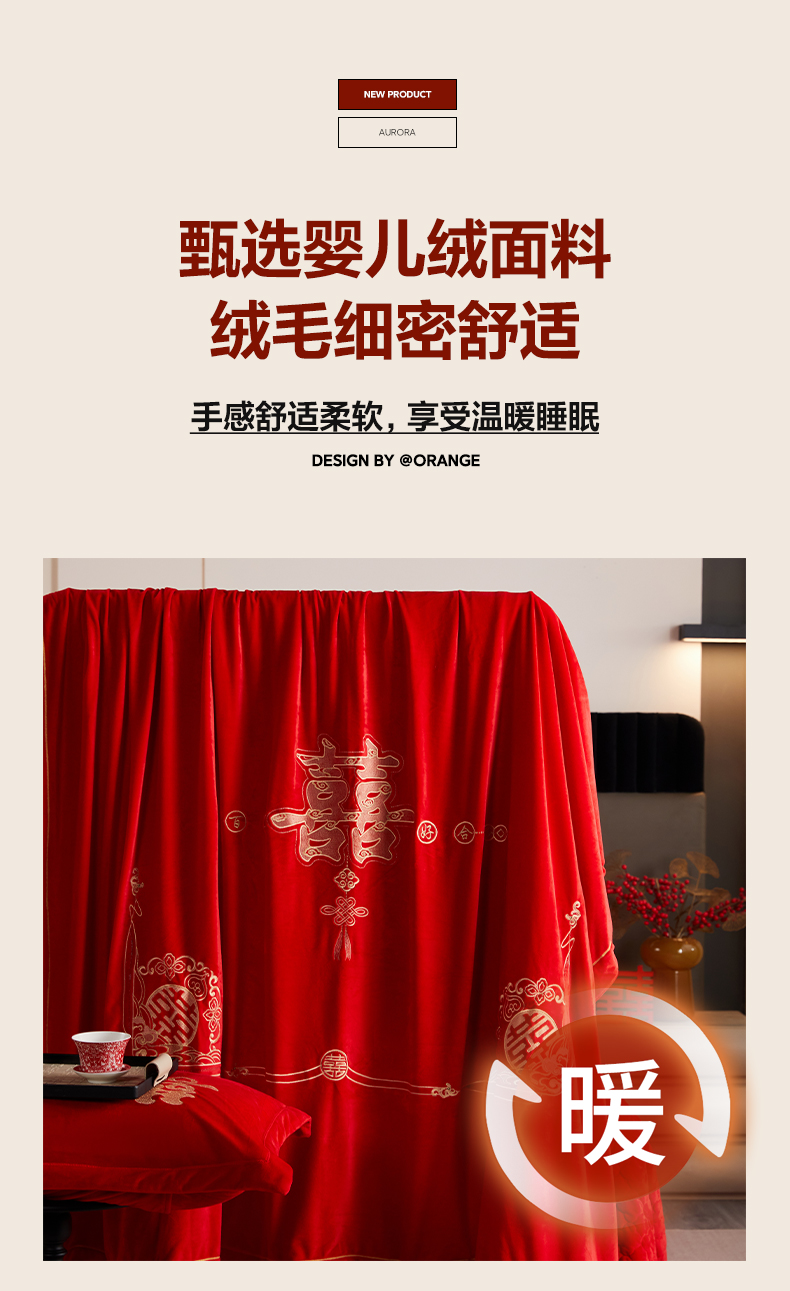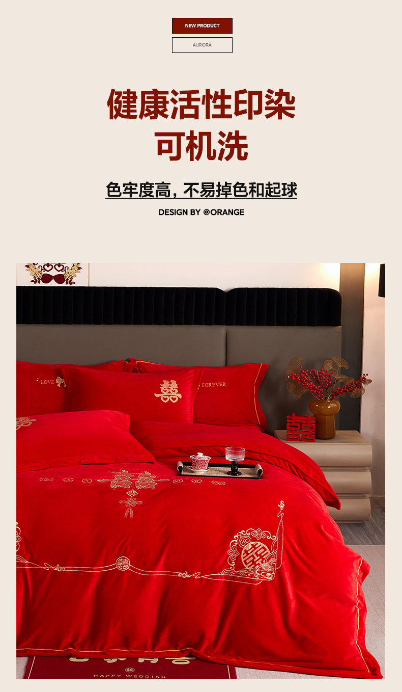 商品名称:默忆 2025新款婴儿绒刺绣婚庆四件套 家家有喜