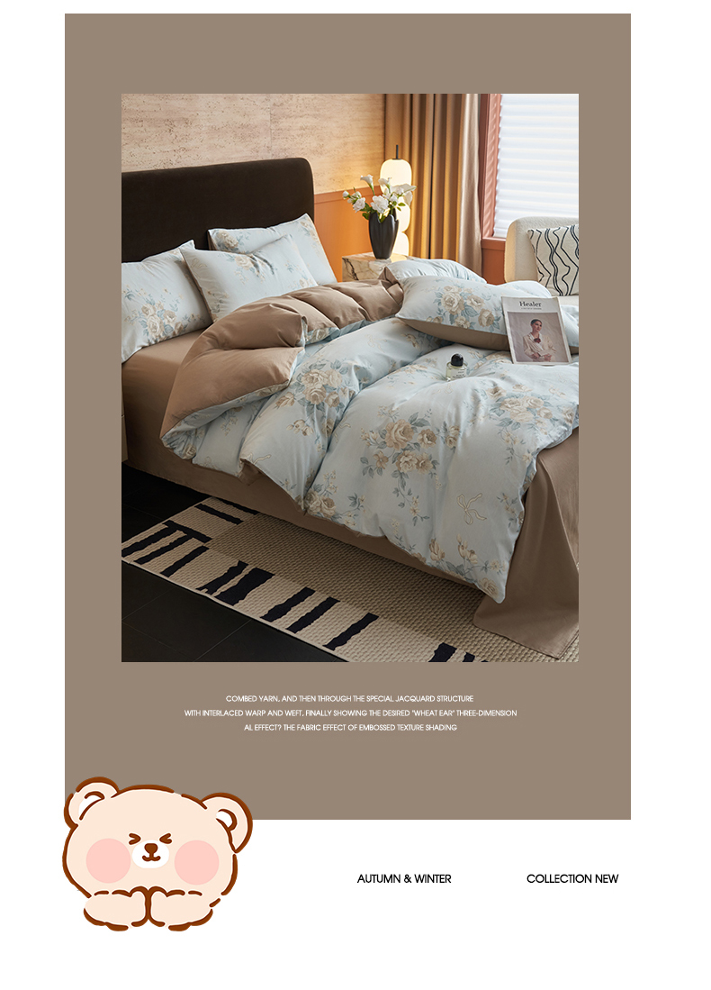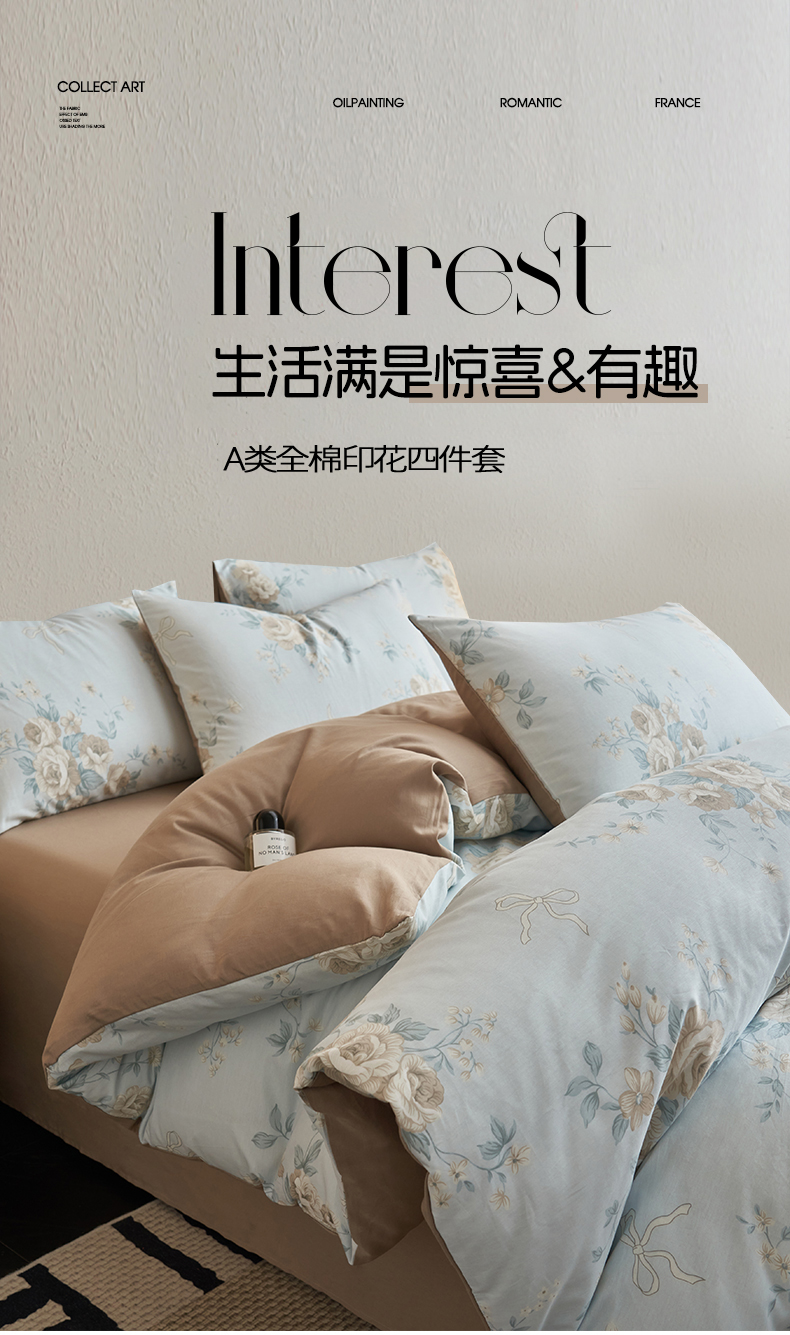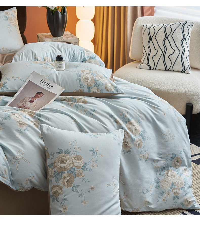当前位置: 91家纺网 > 商品网购 > 床品套件 > 四件套 > 全棉普通四件套 > 恒爱家纺2025新款A类全棉印花四件套 蔓枝