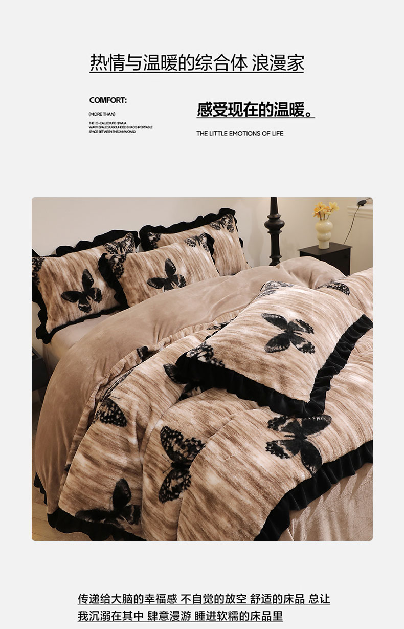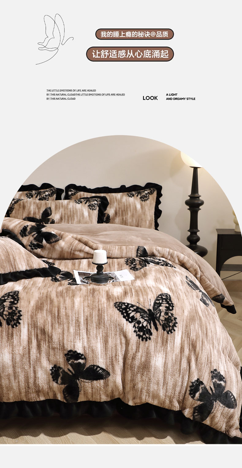 (总)席之家 2025新款韩版黑色花边美拉德系加厚皮草兔毛绒四件套,蝶舞,豹纹 灰,豹纹 咖,粉黛,花笺,极简 灰,极简 咖,觅影,条纹