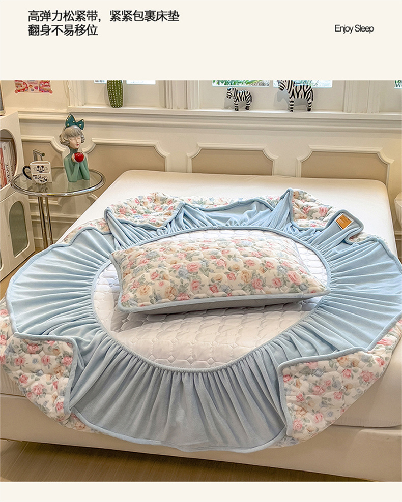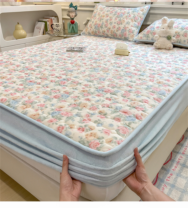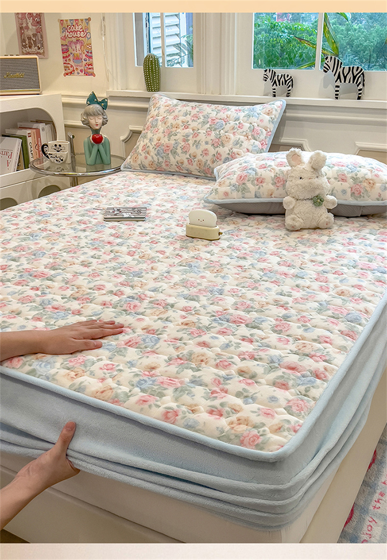 布卢姆床垫 2025新款A类抗菌印花牛奶绒夹棉床笠 花在云端