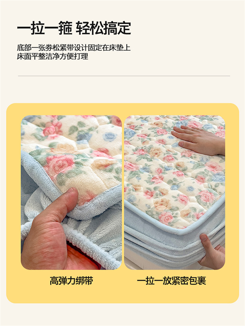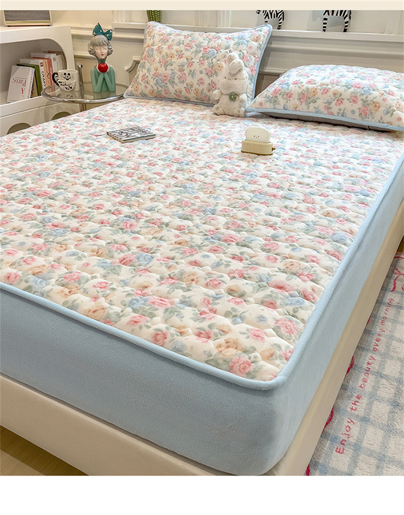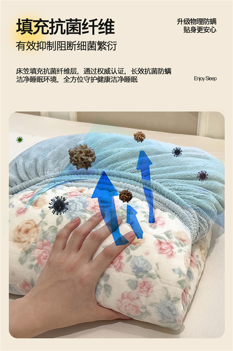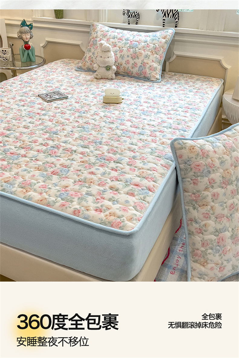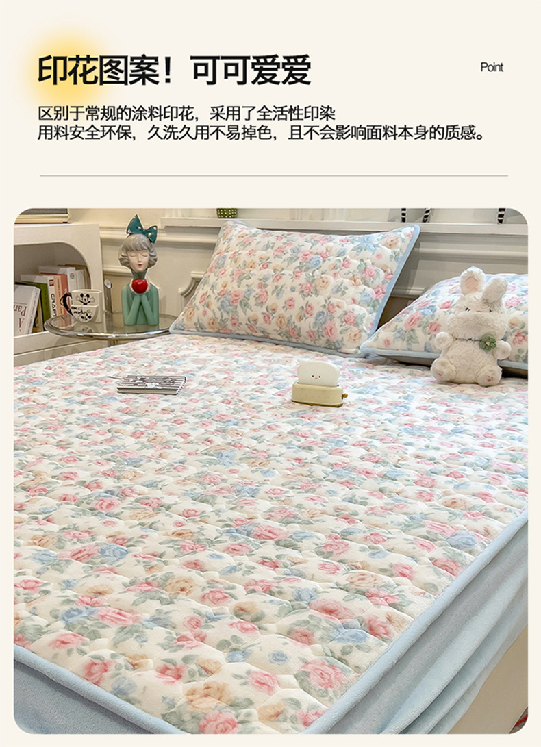 商品名称:布卢姆床垫 2025新款A类抗菌印花牛奶绒夹棉床笠 花在云端