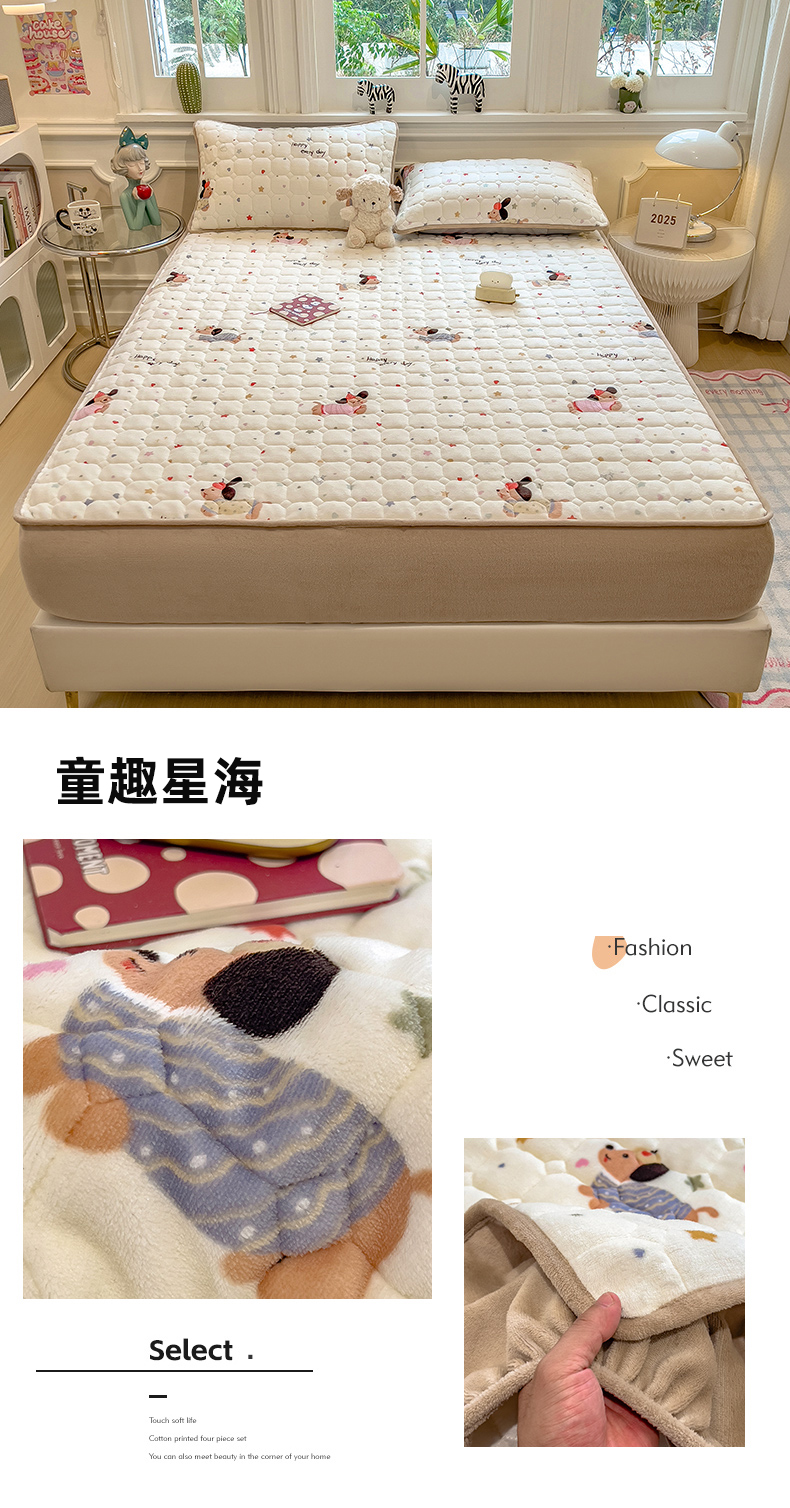 (总)布卢姆床垫 2025新款A类抗菌印花牛奶绒夹棉床笠,爱如星尘,春暖花开,飞天小象,童趣星海,粉粉蕾丝熊,叶畔兔语,花在云端,蓝色星光