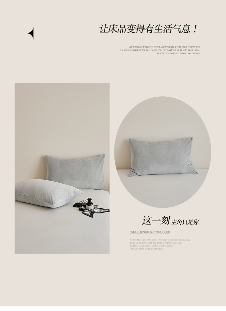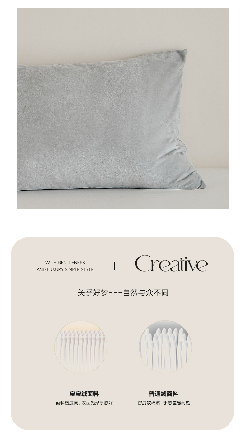 商品名称:EH家居 2025新款七度灰宝宝绒枕套系列 七度灰