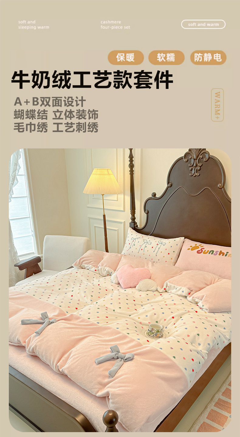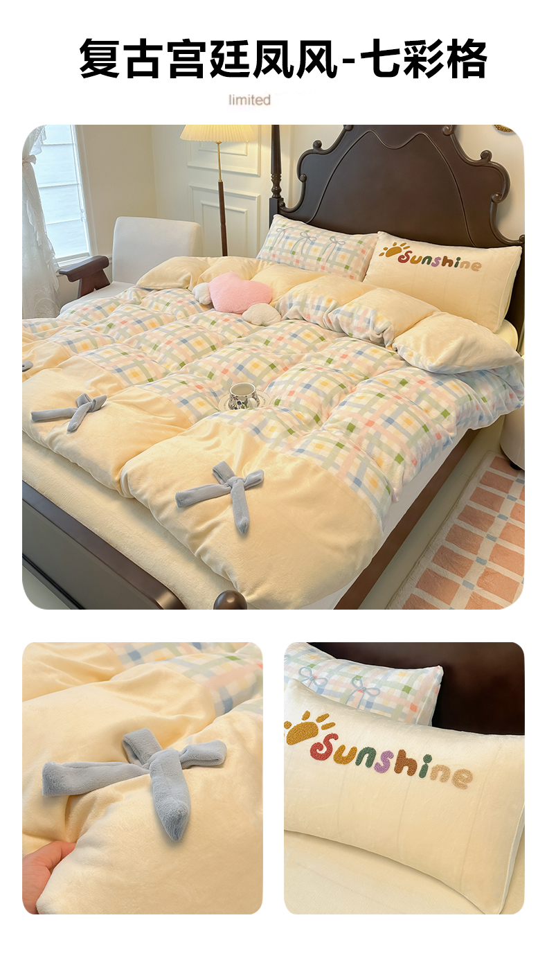 当前位置: 91家纺网 > 商品网购 > 床品套件 > 四件套 > 牛奶绒四件套 > 子钦家纺 2025秋冬新款复古宫廷风加厚牛奶绒蝴蝶结款毛巾绣四件套 复古宫廷风-七彩爱心
