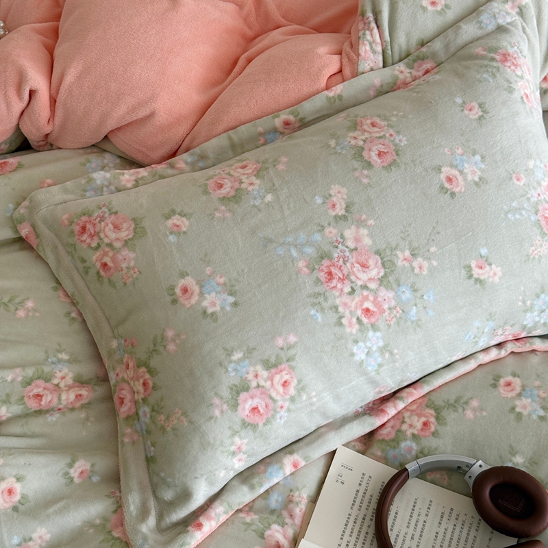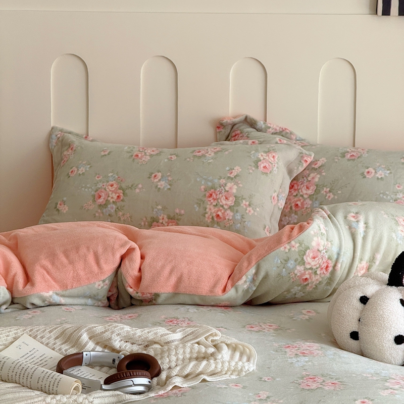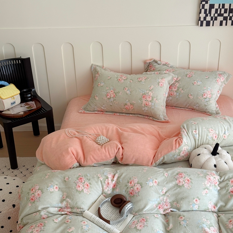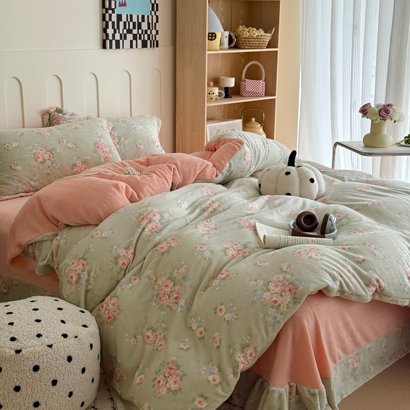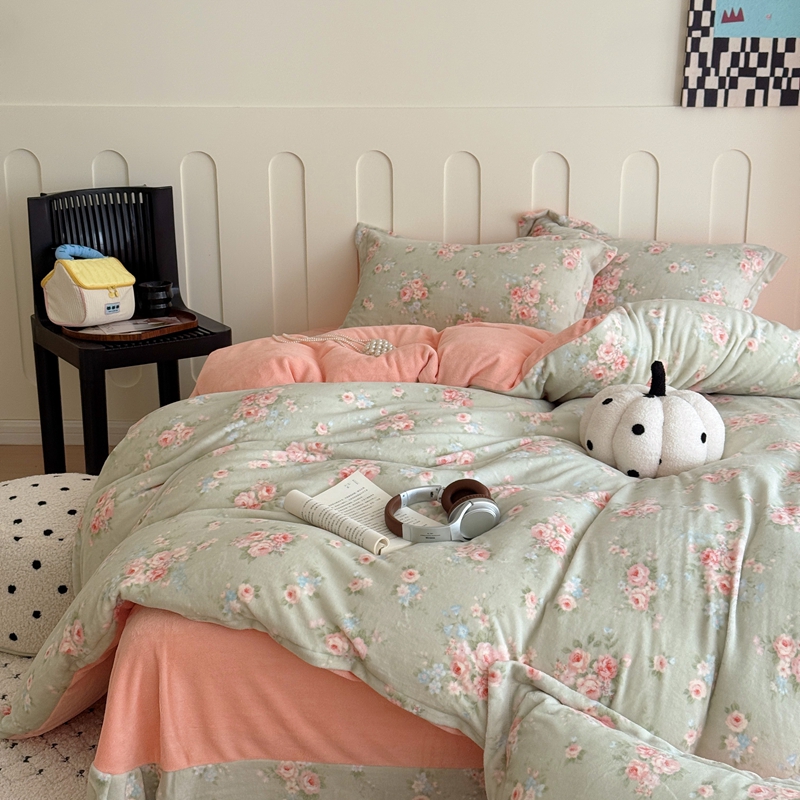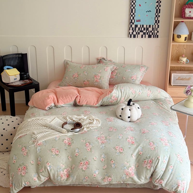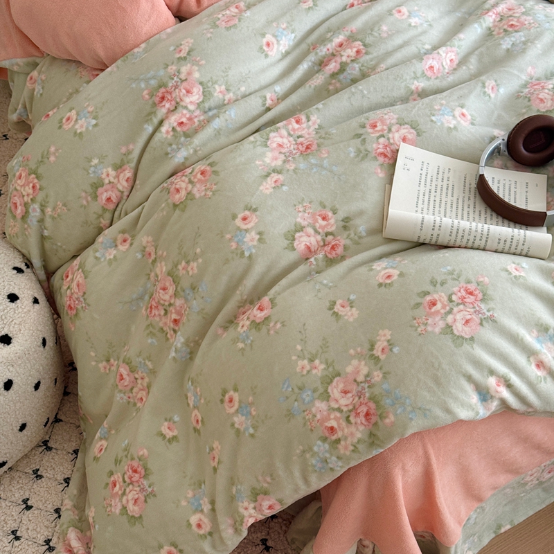 于果 2025新款牛奶绒印花四件套 沐熙花-绿