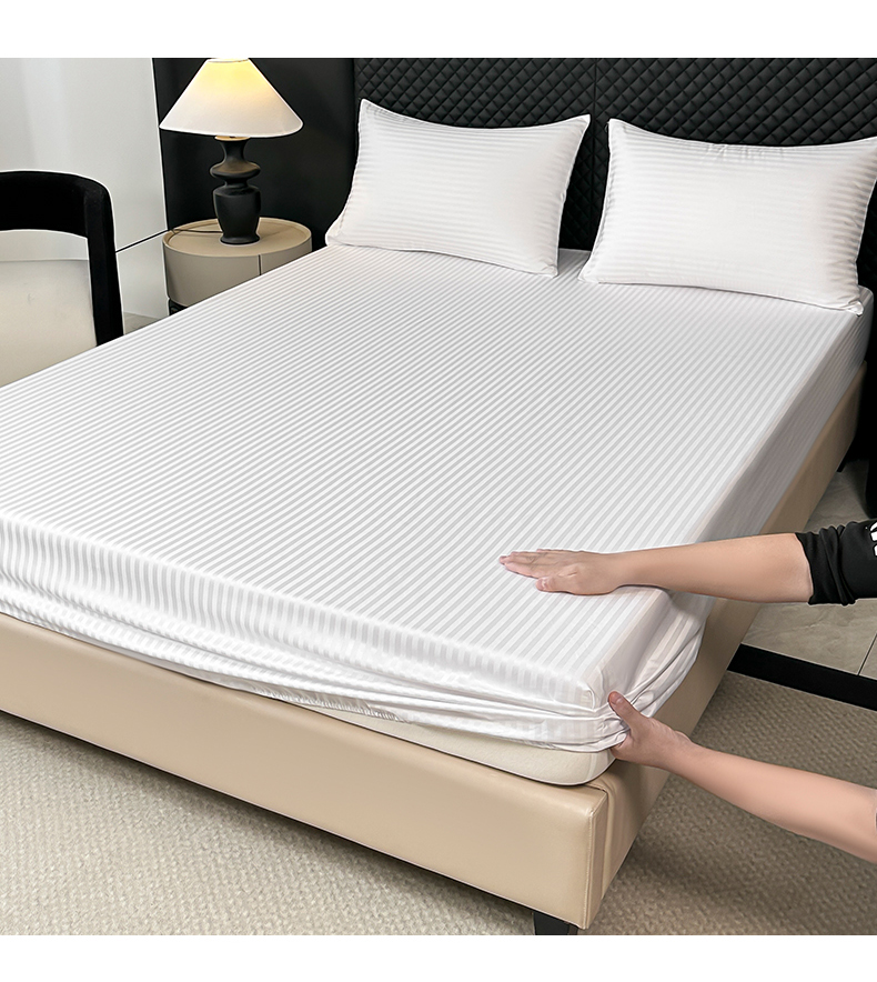 • 91家纺网 家纺一手货源 找家纺 安力森/诚臻酒店用品 2025新款酒店布草床单高支高密缎条款床笠三件套月子中心养老院机构专用床品 浅灰色