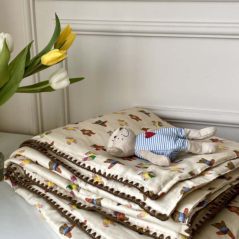 • 91家纺网 家纺一手货源 找家纺 (总)源启生活 2024新款全棉双层纱四件套-熊啾啾,熊啾啾