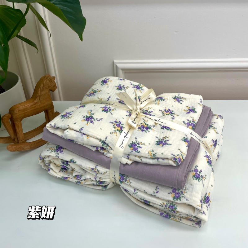 源启生活 2025新款全棉A类双层皱皱纱四件套 紫嫣