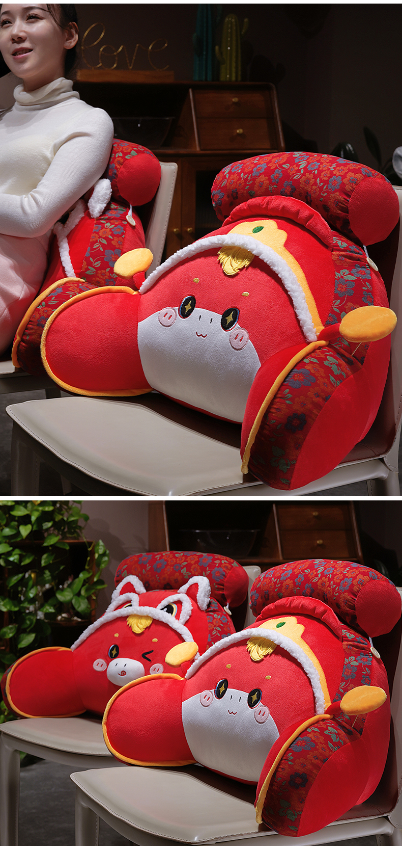 商品名称:仟亿莱 2025新款醒狮小马驹三层纱拥抱式腰靠 拥抱醒师福马
