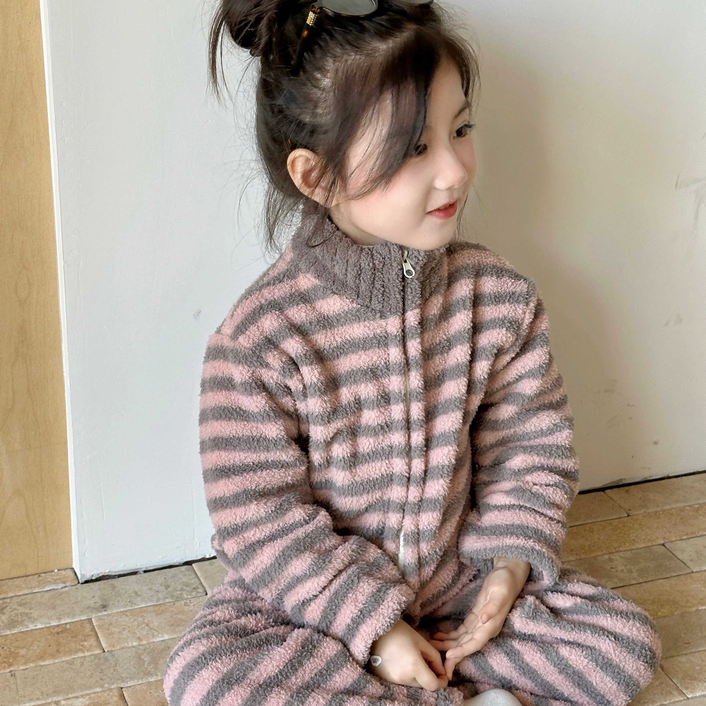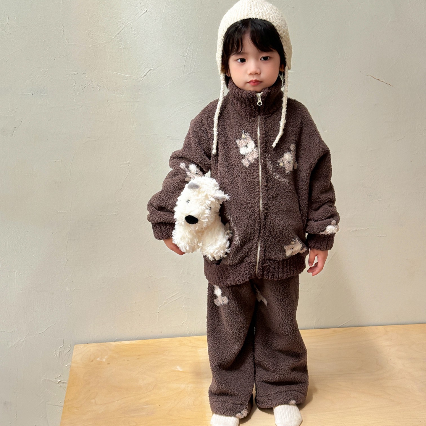 妍景家居生活馆 2025新款儿童半边绒拉链款套装 哈基米深棕