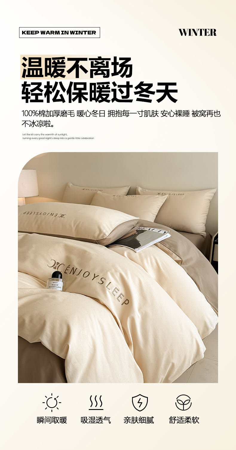 商品名称:(总)小叮当家纺仓储工厂店 (买家秀 爆款花型 不断货)2025新款A类全棉纯棉加厚磨毛刺绣纯棉不掉毛四件套