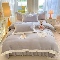 漫布云2025秋冬简约轻奢款230g全消光牛奶绒兔毛绒贴布绣花夹棉床盖款四件套纯色蕾丝花边刺绣床裙款床盖--心愿系列 心愿-高级灰