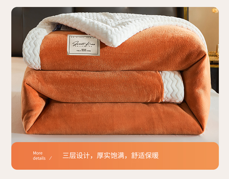 小叮当家纺仓储工厂店 2025新款A类母婴级婴童毯子三层加厚牛奶绒毛毯牛奶绒毯子午睡毯珊瑚绒毛毯 毯子 苹果-日落金