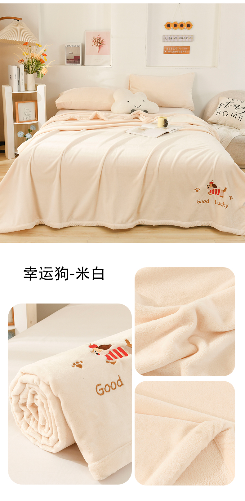 (总)恋绒家纺 2025新款刺绣款双面绒毛毯毯子盖毯,幸运狗-湖蓝,幸运狗-米白,幸运狗-浅粉,幸运狗-深灰,幸运狗-深蓝