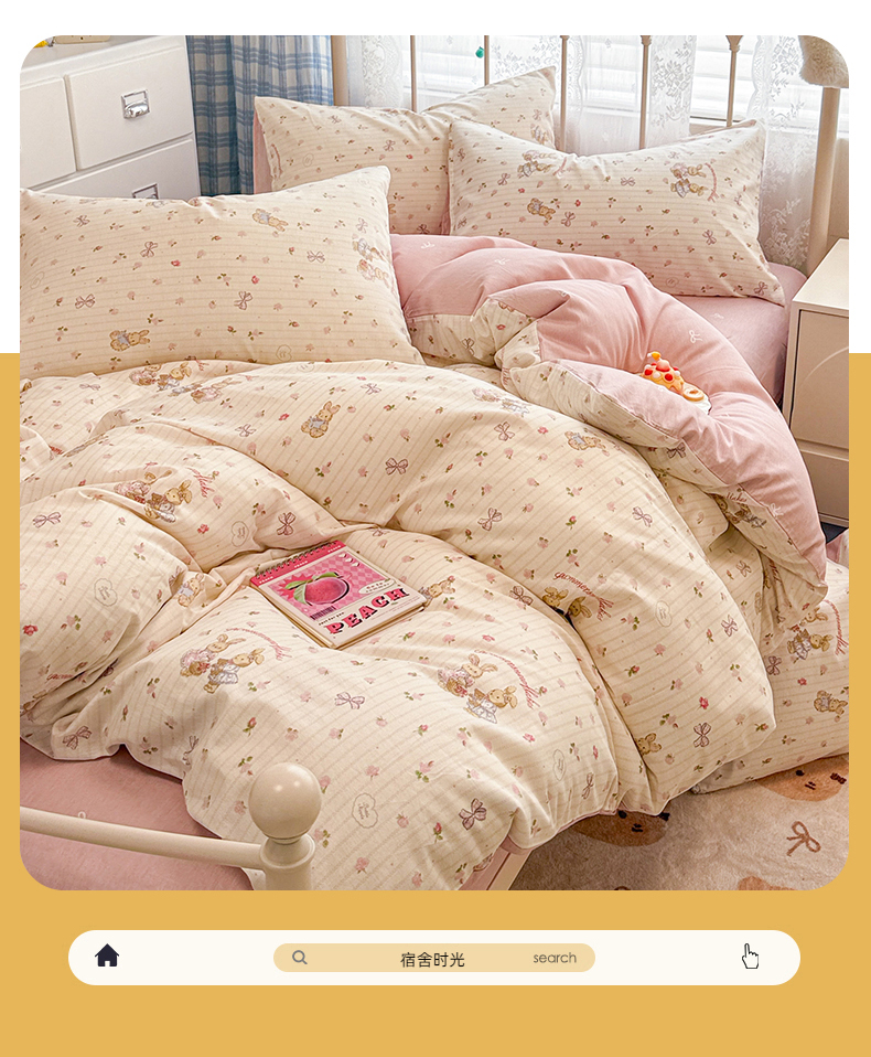 (总)简宜家居(朝初家纺) 2025新款棉加绒豆豆绒牛奶绒四件套,呗卡,蹦蹦哒,缤纷动物,草莓小兔,格子草莓熊,花园兔,花中萌兔,库洛米紫,宁静-米黄,甜甜库洛米,玩趣伙伴,写意灰