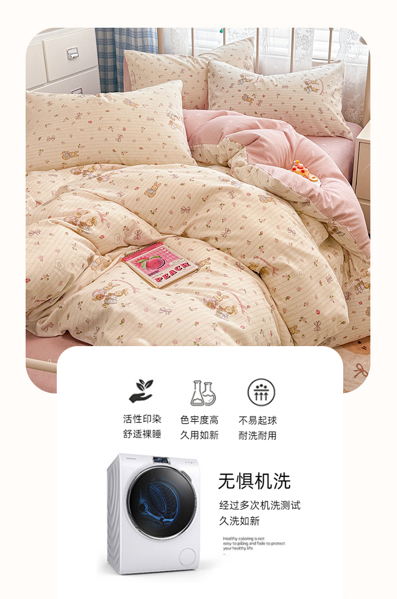 简宜2023新款13070纯棉全棉40支斜纹卡通小清新学生三件套四件套,花园兔,紫葡仙子,倩影粉,hello 萌熊,嘟嘟小车,简笔画,开心小黄鸭,梦幻城堡,浓情爱意