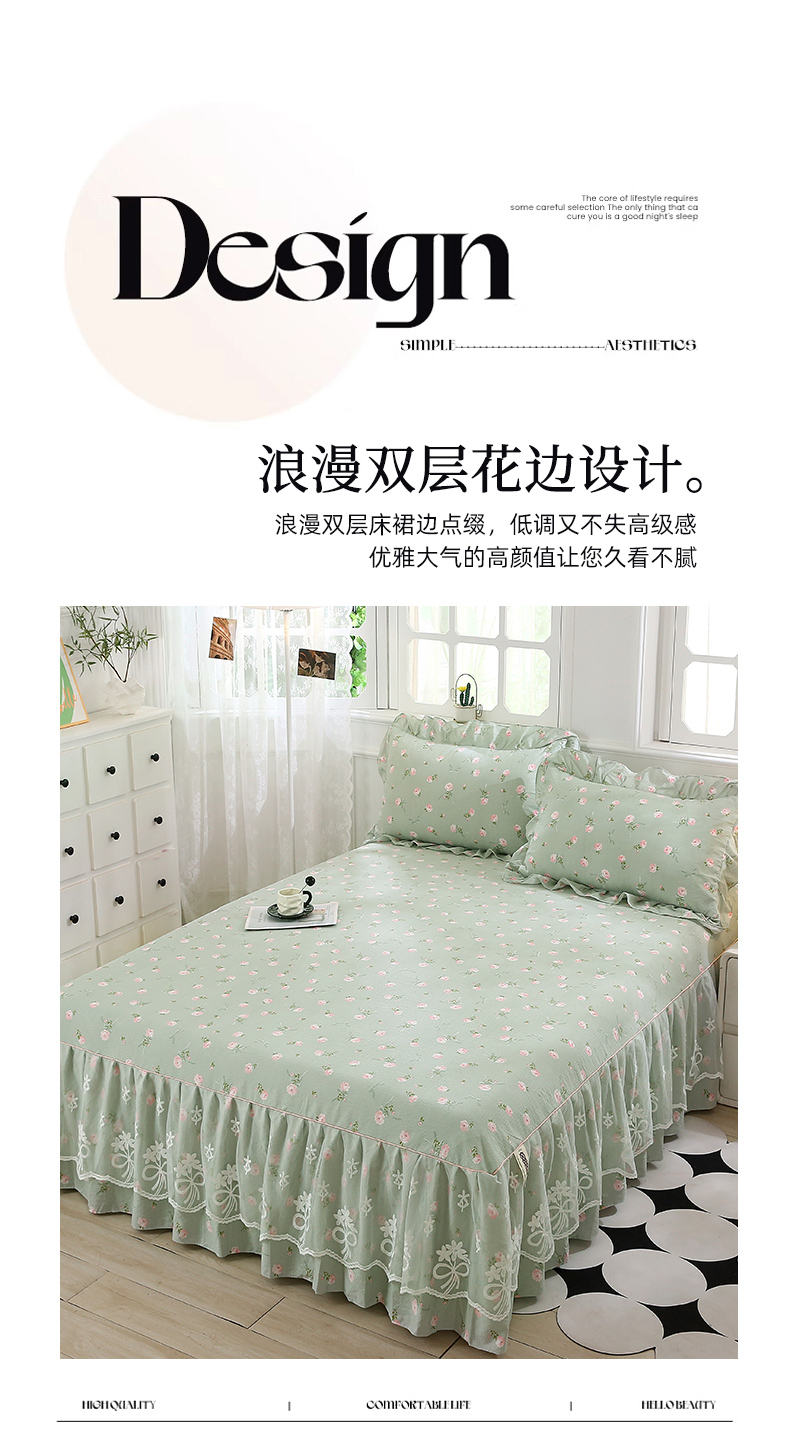 (总)曲之慕 2026新款韩版双层纱蕾丝花边床裙款四件套,爱如星辰,半身倾慕,花海,落日暮年-绿,倾心紫,甜蜜甜筒,兔子欢喜,相思-樱桃红,栀子海