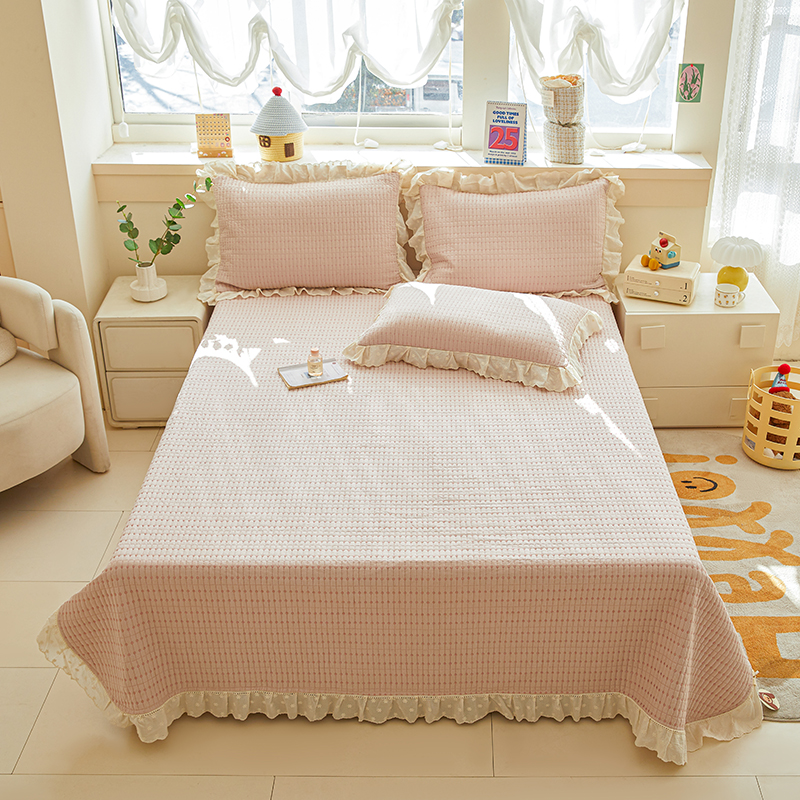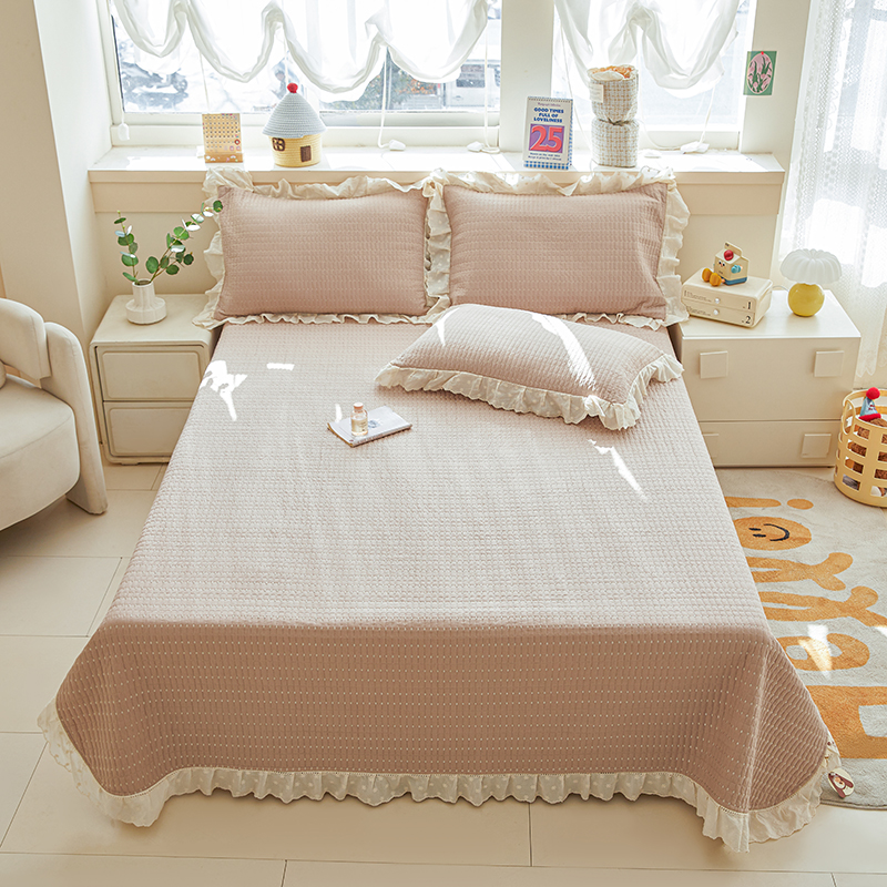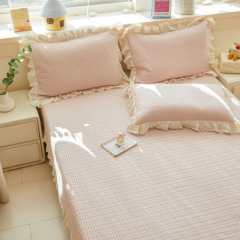 商品名称:源舜家纺 2026新款天丝棉麻莱赛尔莫代尔天丝棉米粒绣床盖三件套 米粒-粉
