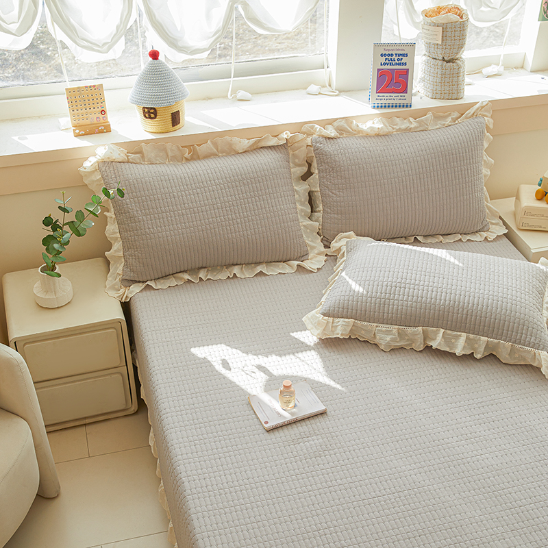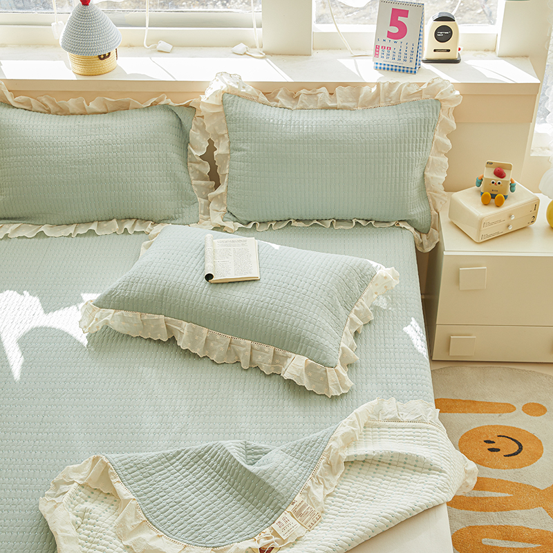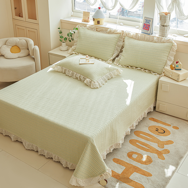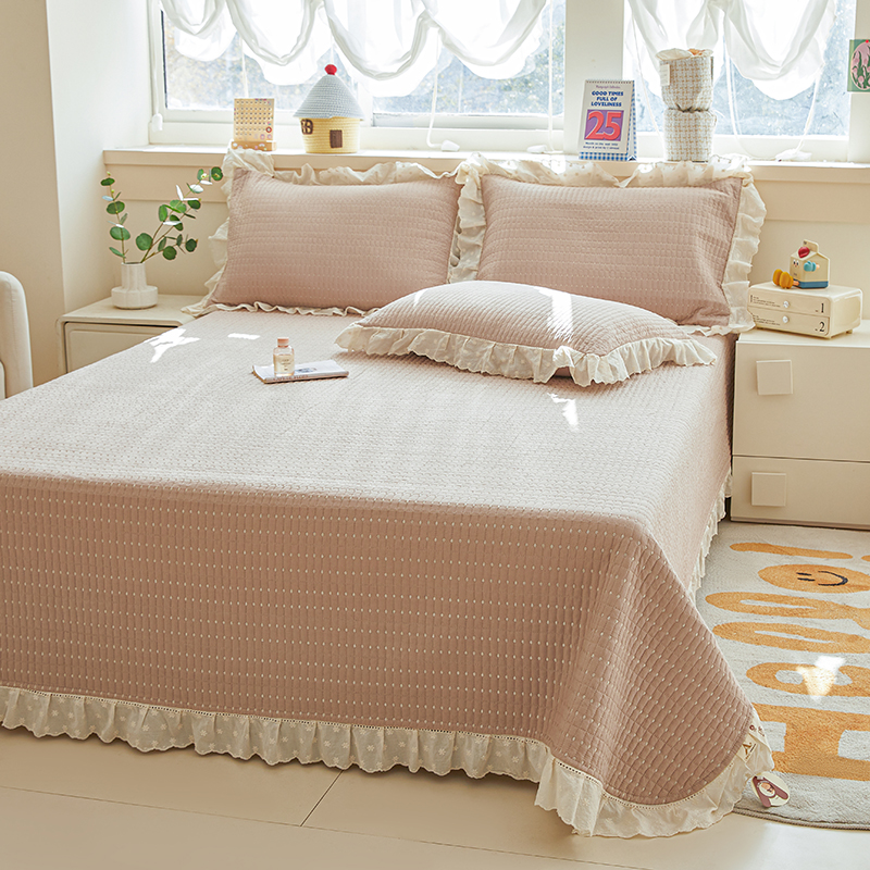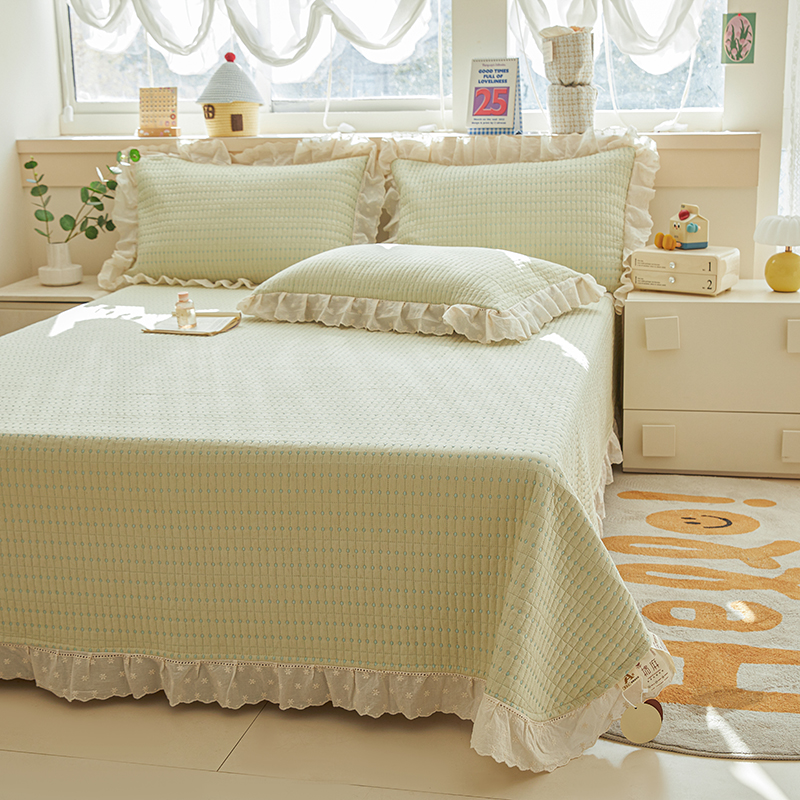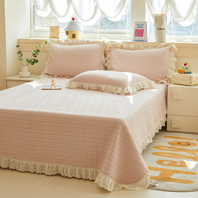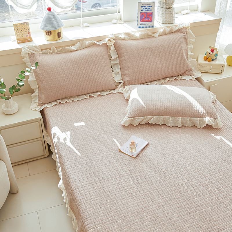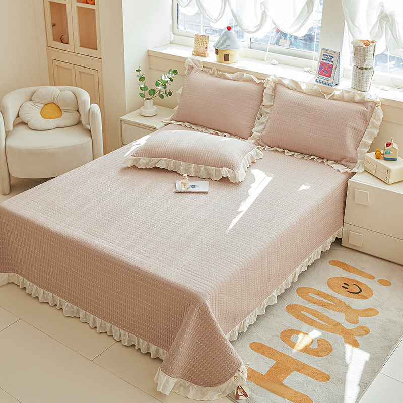 (总)源舜家纺 2025新款牛奶婴儿绒米粒绣韩系花边床盖三件套,婴儿草绿,婴儿豆沙,婴儿粉,婴儿灰,婴儿灰蓝,婴儿蓝,婴儿深绿,婴儿紫