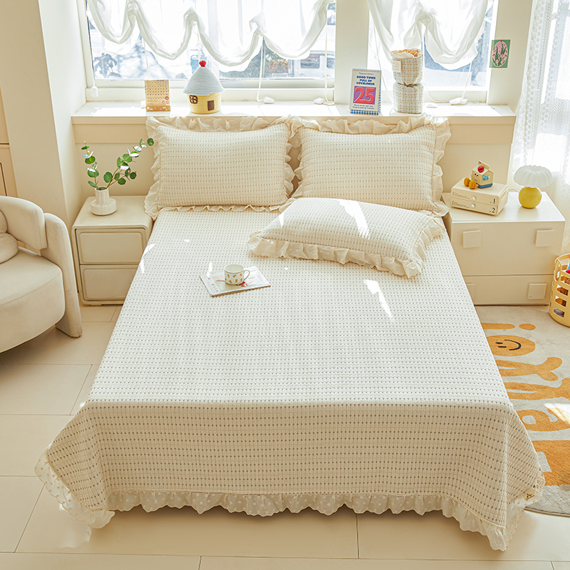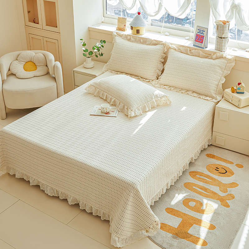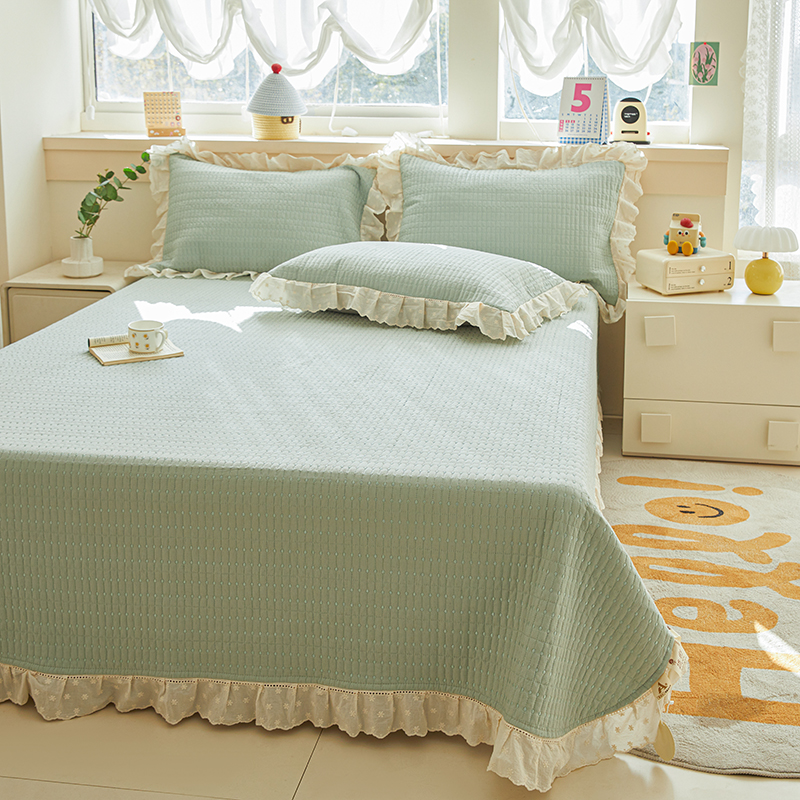 (总)源舜家纺 2026新款全棉双层纱棉花边榻榻米炕盖款(可订制),组合图仅供参考,波点粉,波点灰,波点绿,波点米,波点杏,波点紫