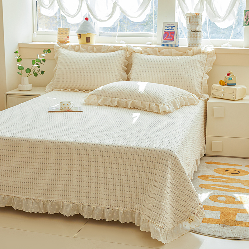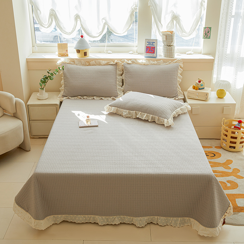 (总)源舜家纺 2026新款全棉双层纱梅花边床盖,波点-白色,波点-粉色,波点-灰色,波点-绿色,波点-浅豆沙,波点-紫色