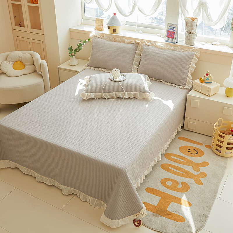 (总)源舜家纺 2026新款全棉斜纹花边床盖多功能被子四件套,沐光美人-灰,动感方块-灰,沐风浅唱-绿,南笙梦-米,甜心花语-紫,文艺风范-粉,小樱桃-米,幸福咪咪-蓝,渲染小花-兰
