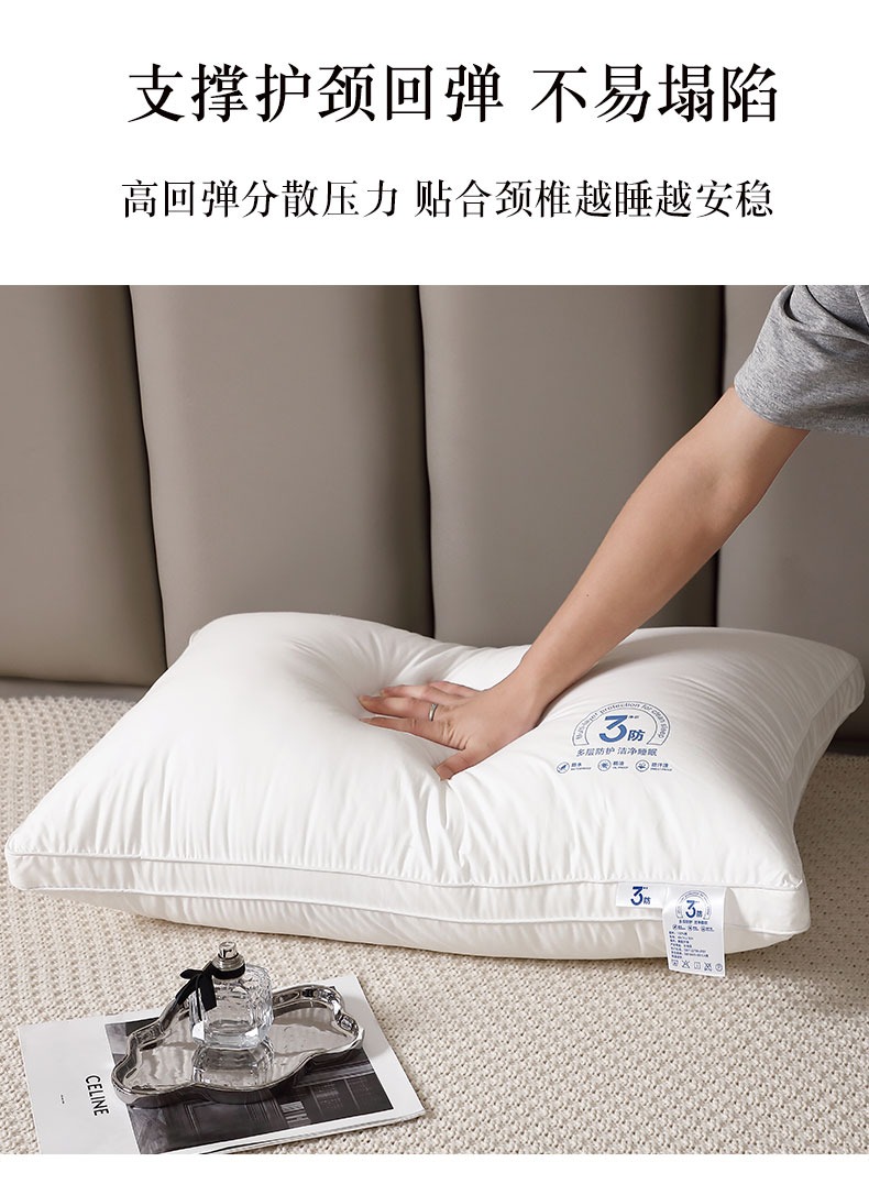 商品名称:佳尚枕芯 2025新款全棉纯棉三防家用可水洗防水防污渍护颈椎助睡眠枕头枕芯 纯棉三防低枕