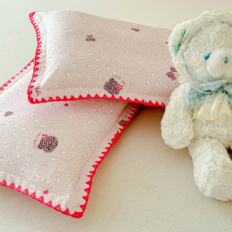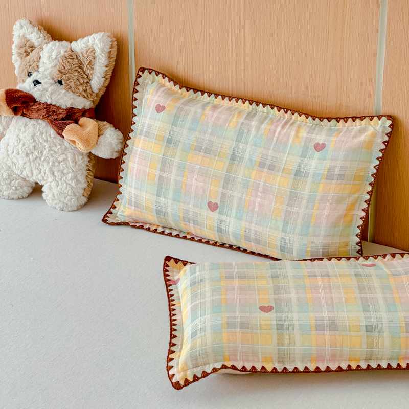 商品名称:金丝鸟家纺 2026新款全棉双层纱贝壳边款枕套多规格儿童枕套 拉条狗