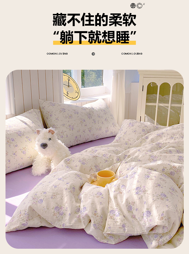 当前位置: 91家纺网 > 商品网购 > 床品套件 > 四件套 > 全棉普通四件套 > 春皖家纺 2026新款A类全棉有氧双层纱印花四件套单品系列-四件套 雾色里德