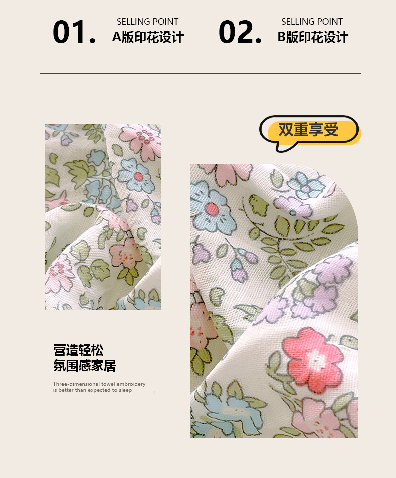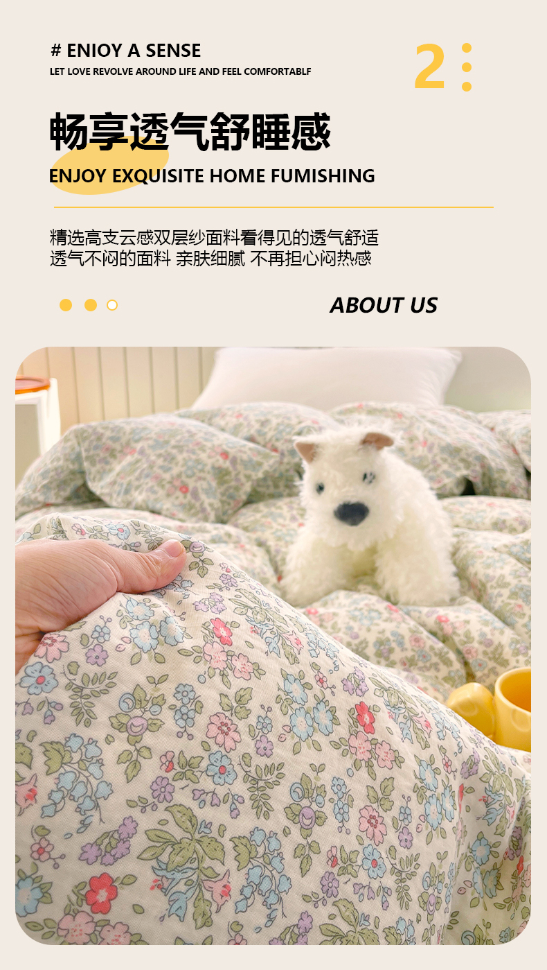 春皖家纺 2026新款A类全棉有氧双层纱印花四件套单品系列-单被套 花町