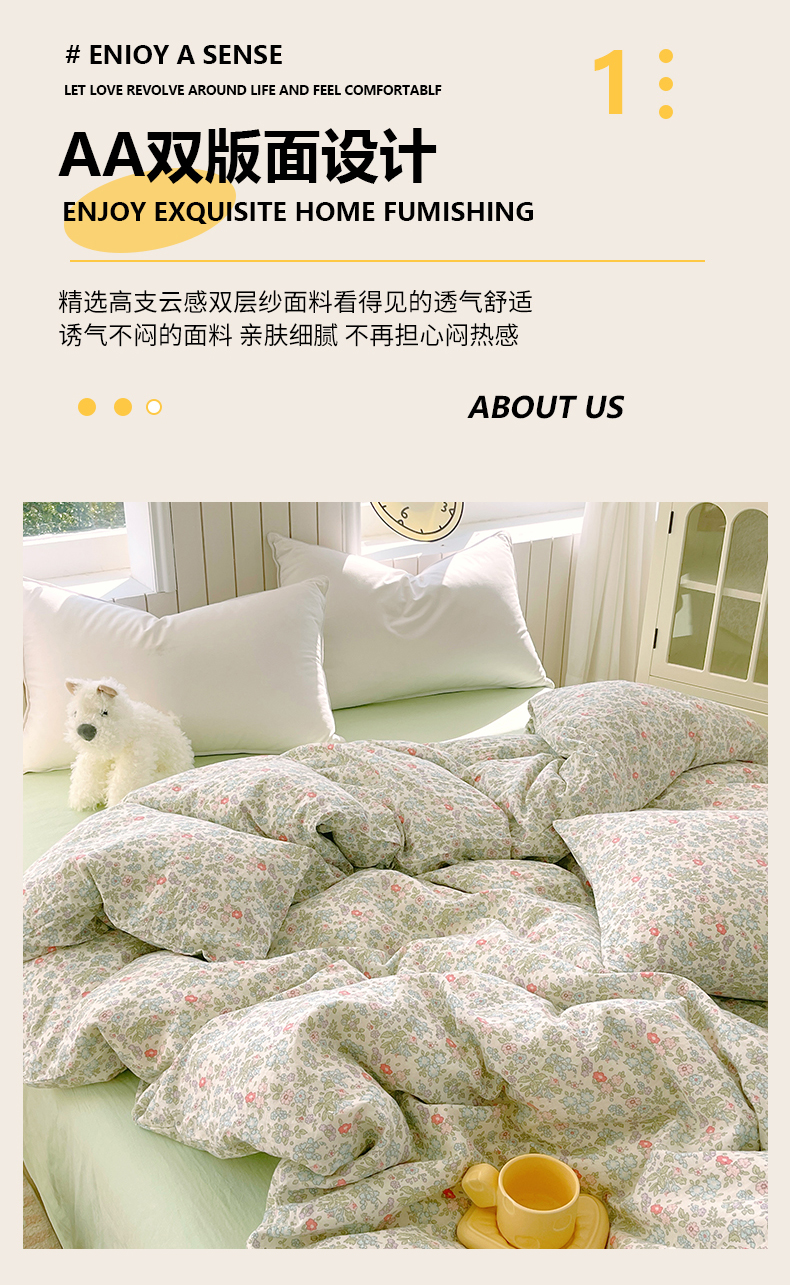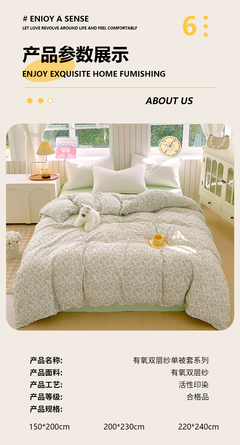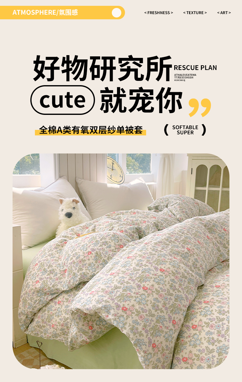 商品名称:春皖家纺 2026新款A类全棉有氧双层纱印花四件套单品系列-单被套 花町