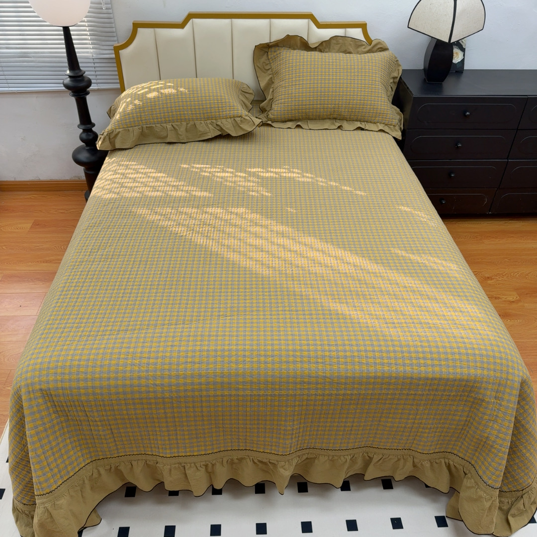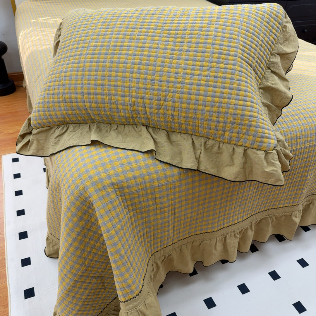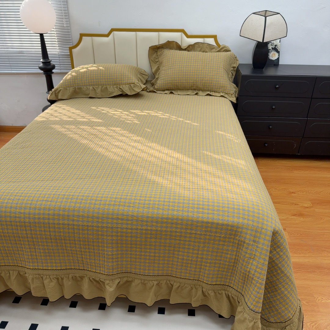 暖居 2026年新款全棉色织水洗棉高温砂洗床盖三件套四件套芸素黄