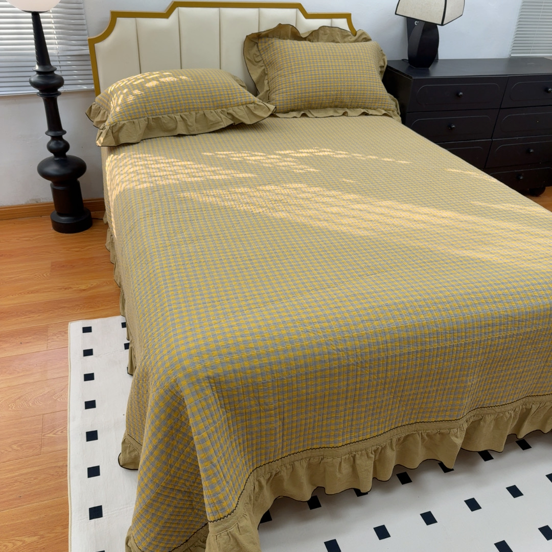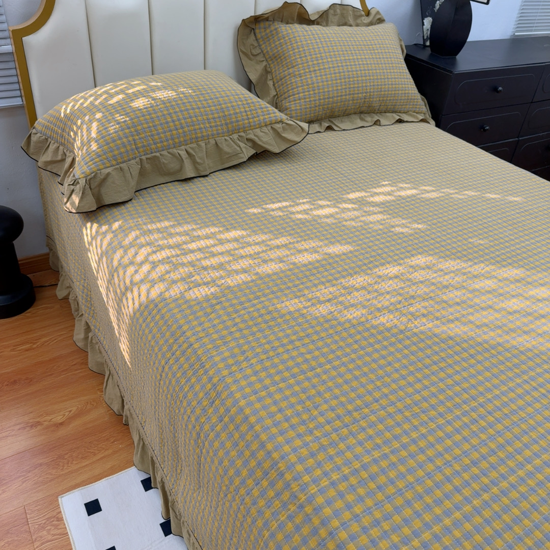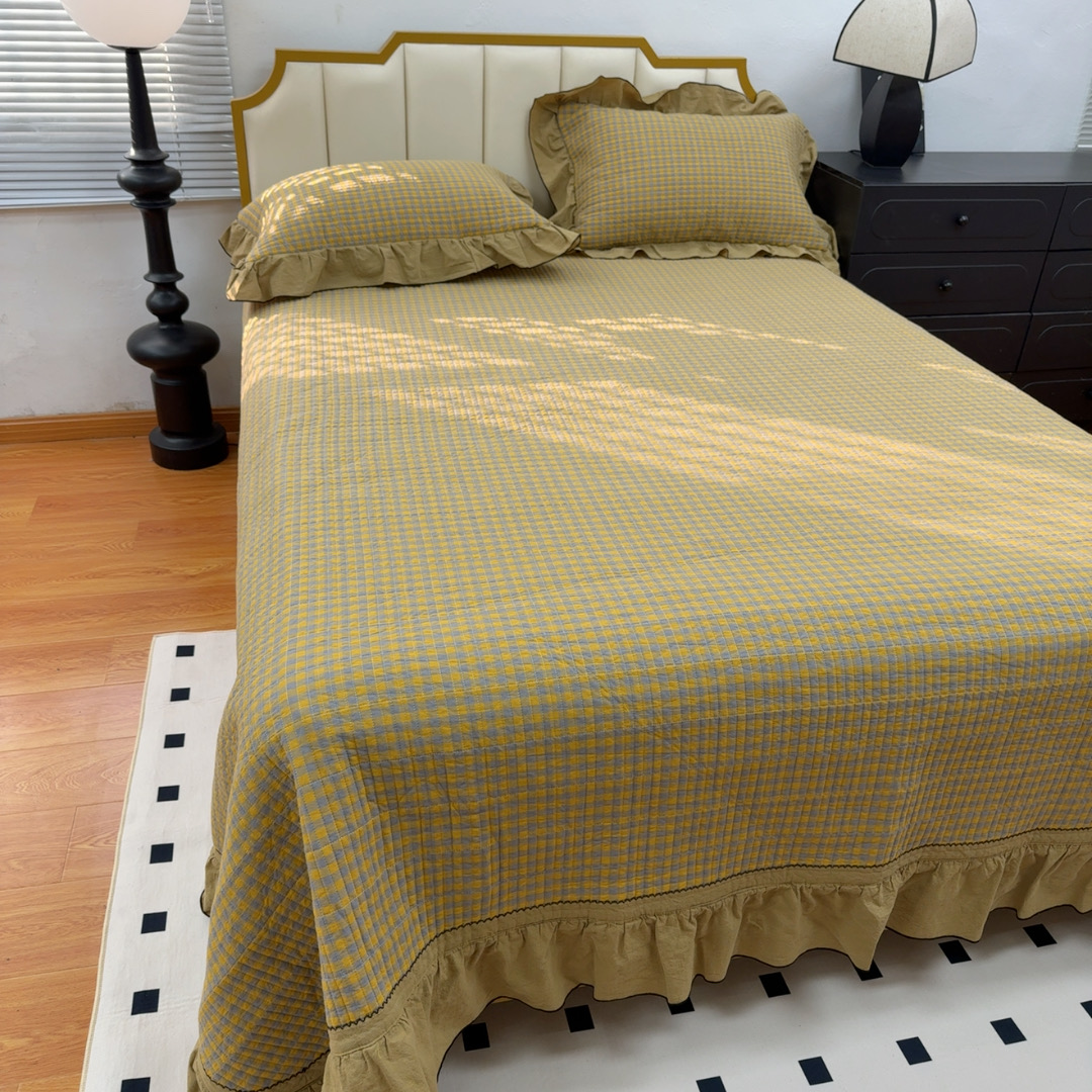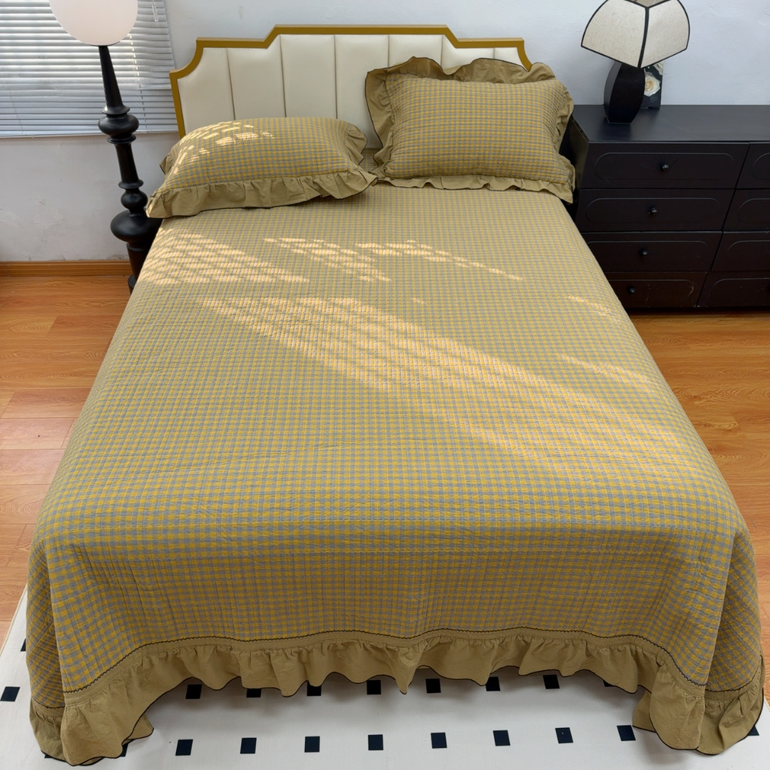 暖居 2026年新款全棉色织水洗棉高温砂洗床盖三件套四件套芸素黄