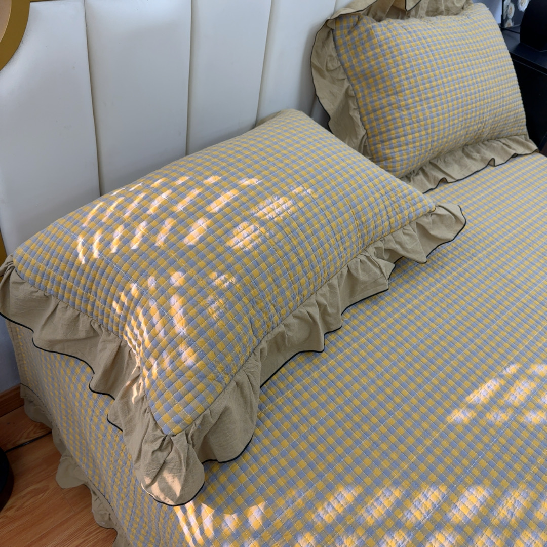 商品名称:暖居 2026年新款全棉色织水洗棉高温砂洗床盖三件套四件套芸素黄