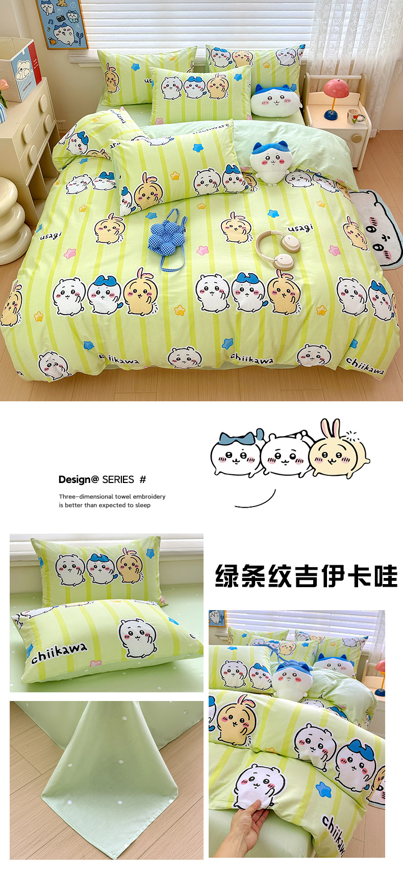 商品名称:朵希曼2026新款吉伊卡哇全棉印花四件套系列 绿条纹吉伊卡哇