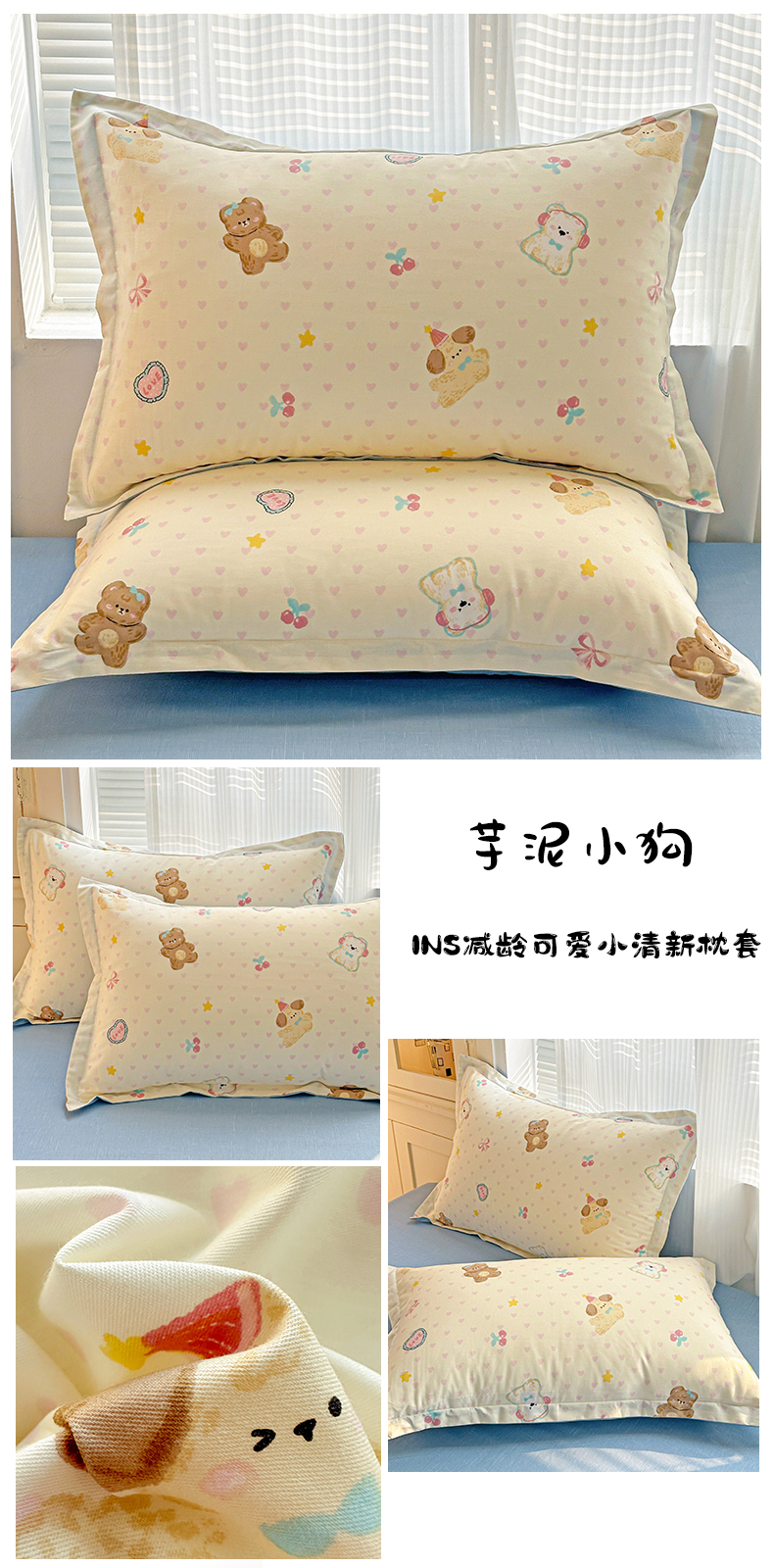 (总)春雨家居 2026新款全棉印花ins减龄可爱小清新单枕套,贝尔兰-兰,达乐宝贝,格子布丁狗,芙莉,朵唯,春漫庭,布布迷宫,比星邦尼狗,故事小黄花,韩系拼图,旧书折痕-蓝,蓝拼KT-兰,浪漫花园,洛克庄园-绿,萌趣汪汪,暮洛星,奶油凯蒂-兰,奶油羞羞狗,清秋夜曲,秋日确幸-豆沙,苏林-绿,苏糖-粉,夏日花莳,小菠萝,小猫时光-兰,心动庄园,星星童话园-兰,叶语轻喃-绿,玉海棠,芋泥小狗,醉梦惜花