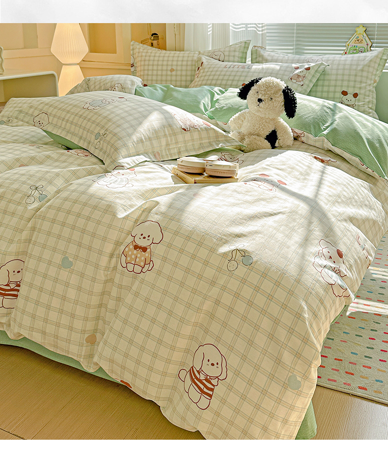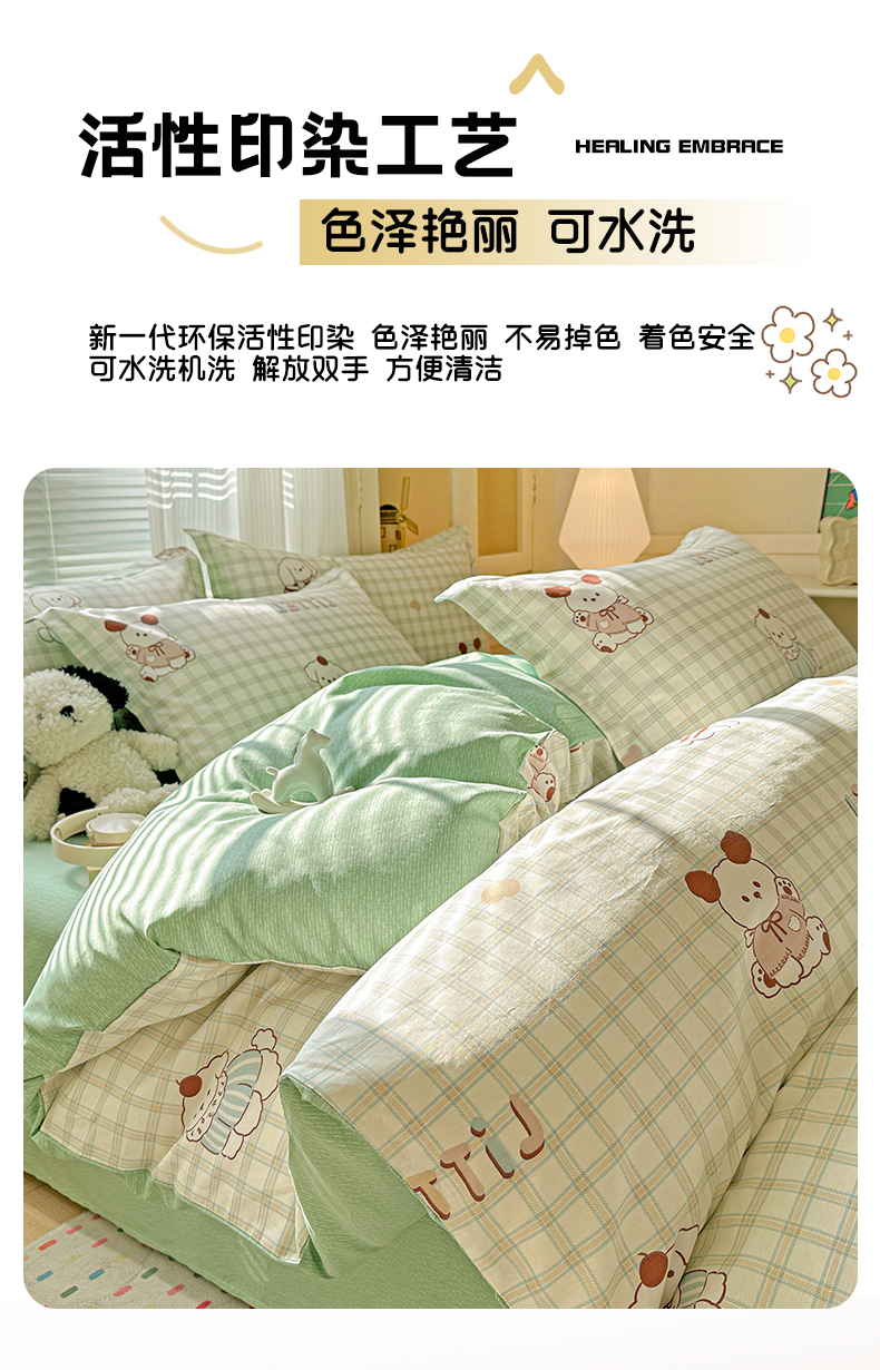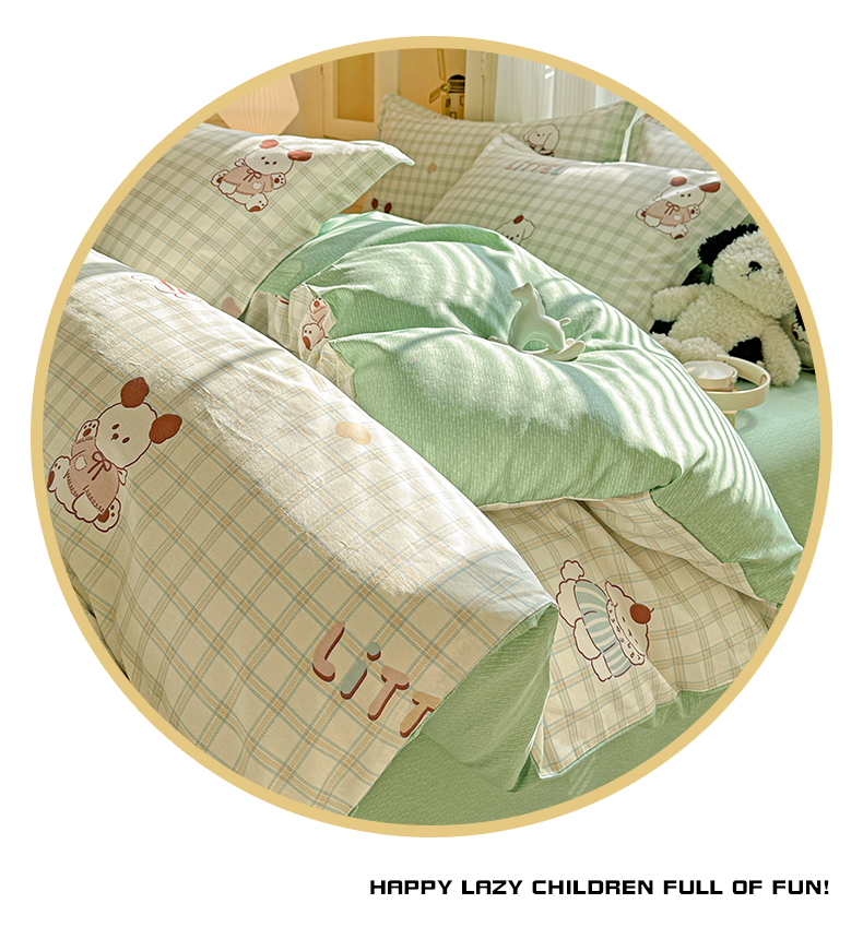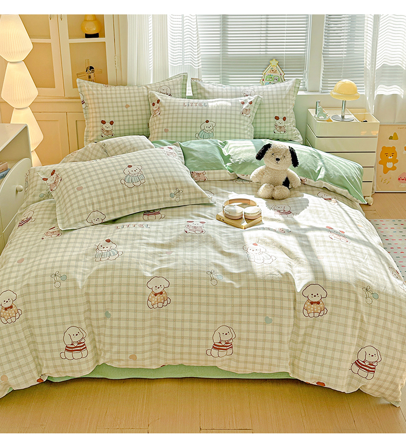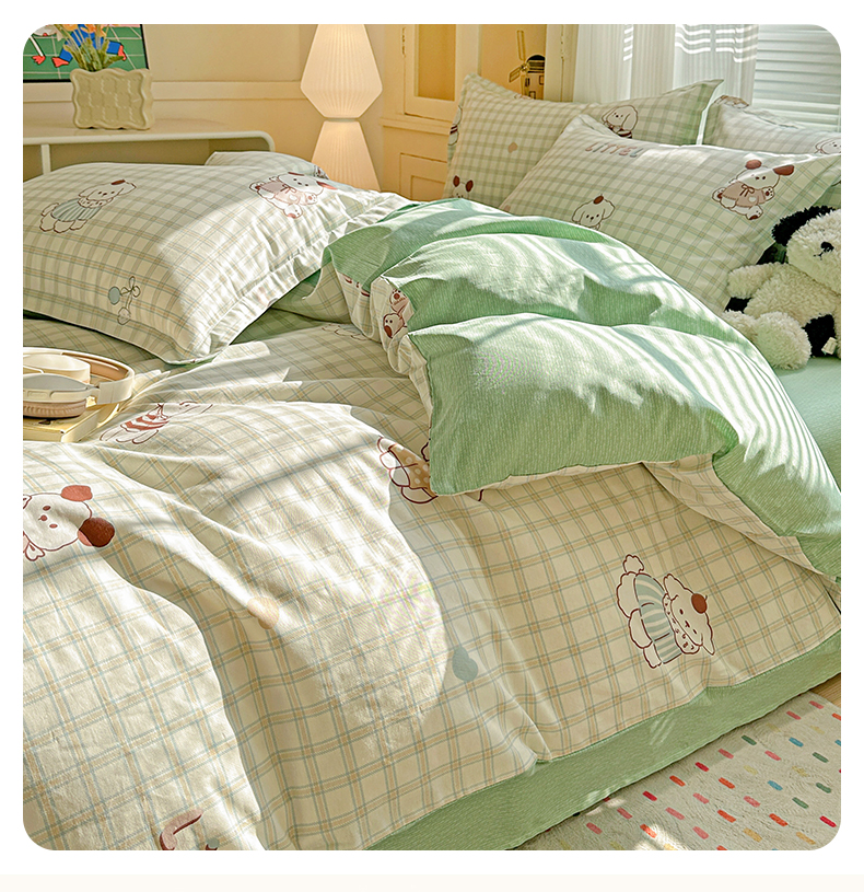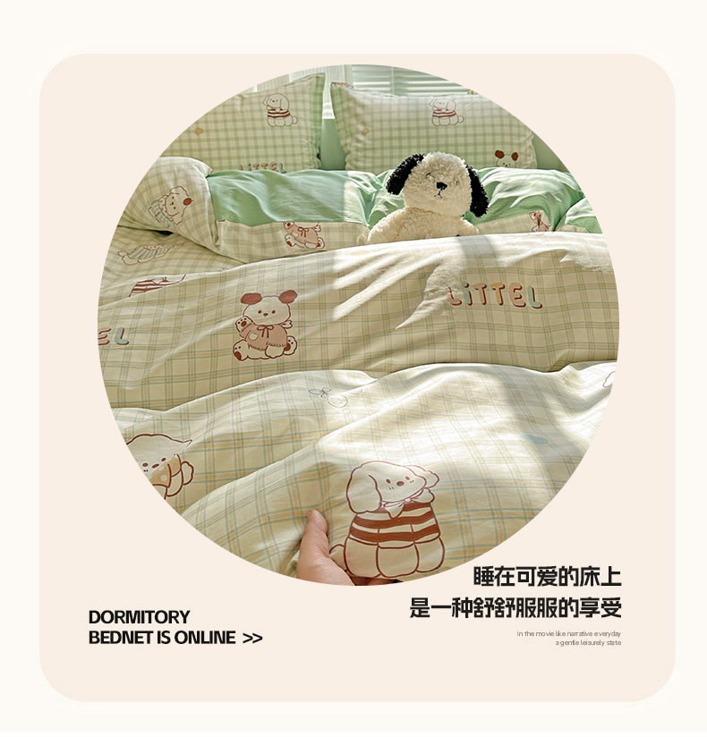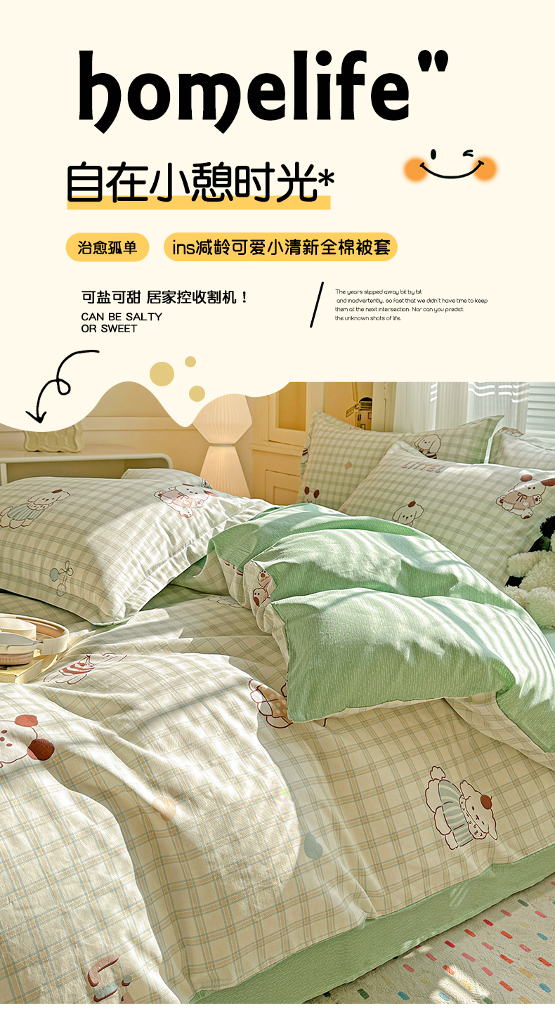 • 91家纺网 家纺一手货源 找家纺 春雨家居 2026新款全棉印花ins减龄可爱小清新单被套 格子布丁狗