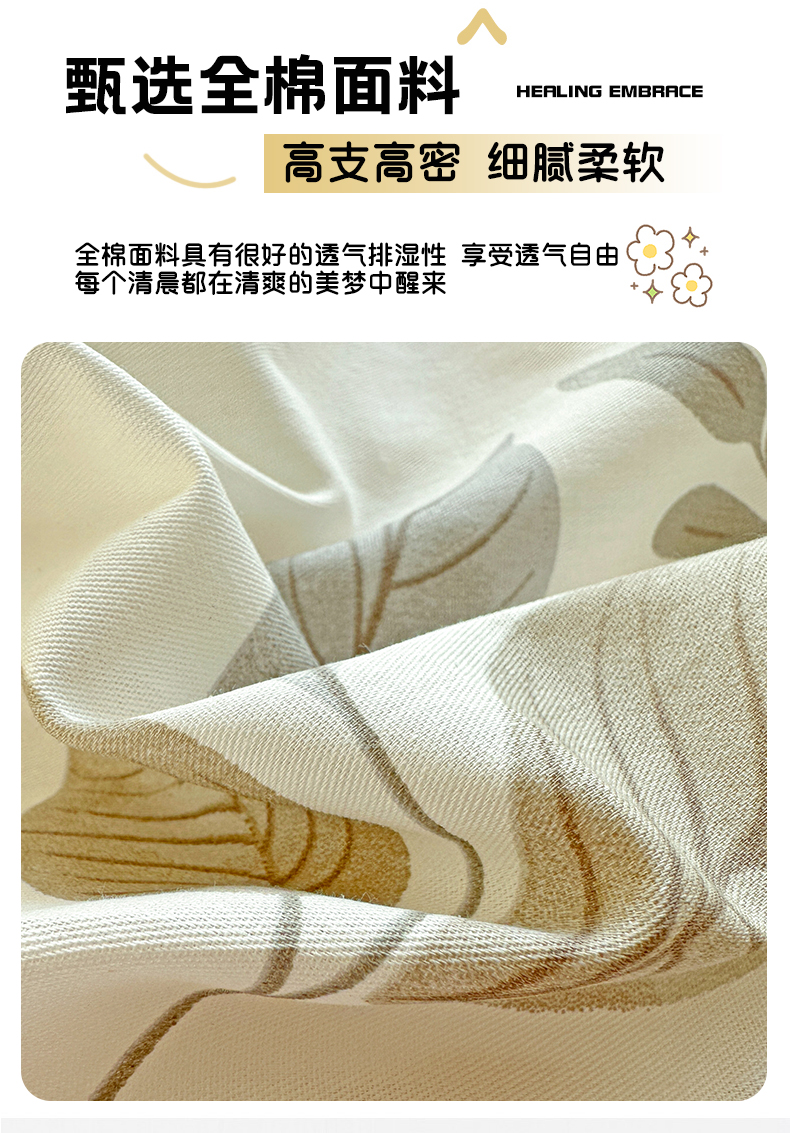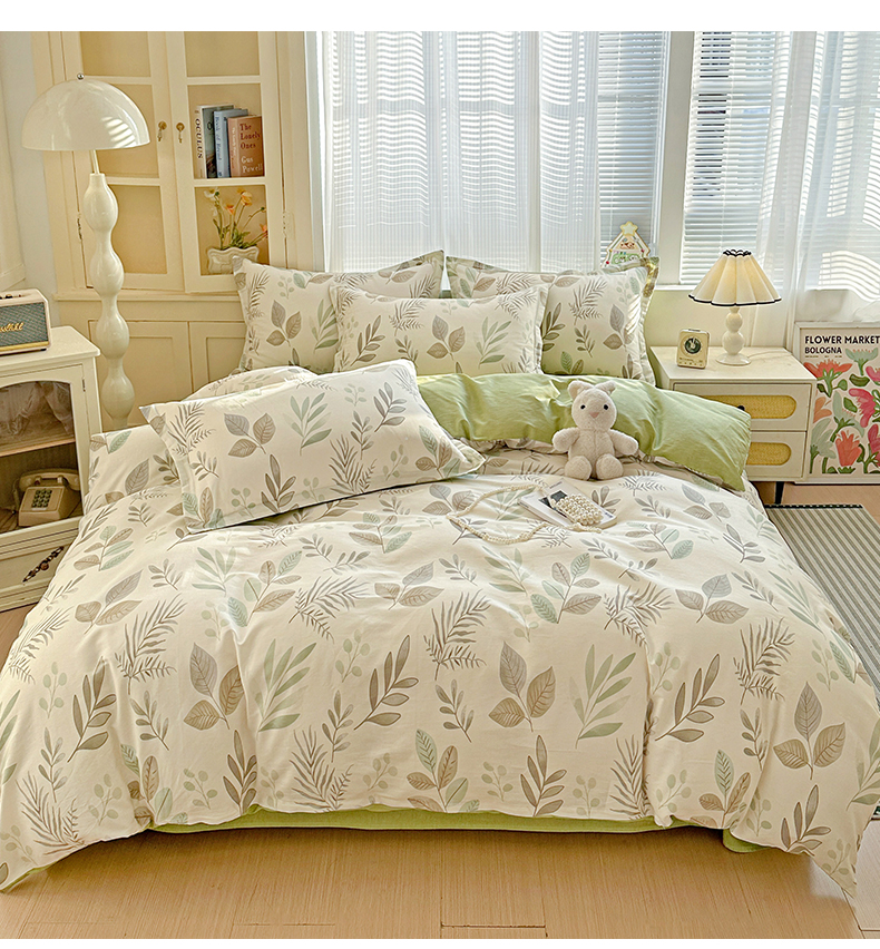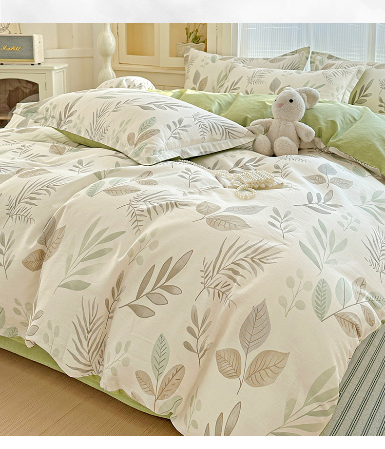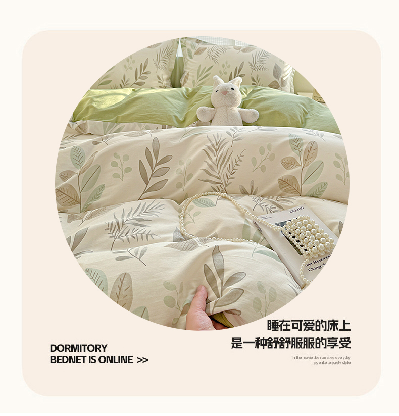 • 91家纺网 家纺一手货源 找家纺 春雨家居 2026新款全棉印花ins减龄可爱小清新单被套 叶语轻喃-绿