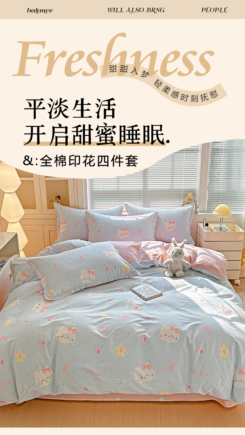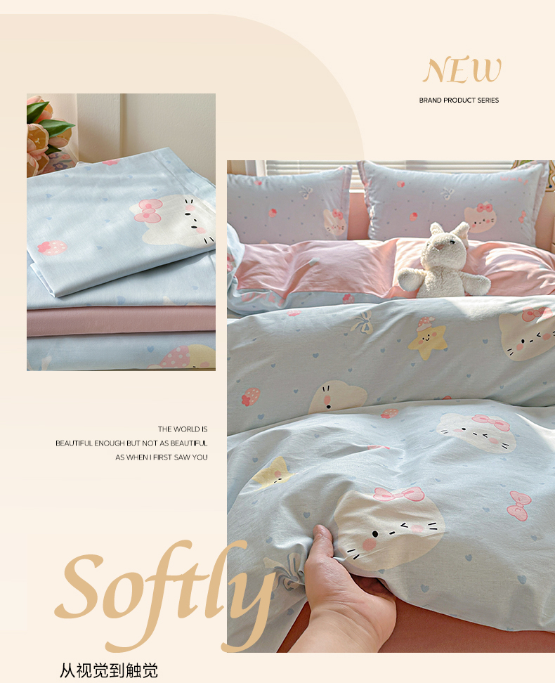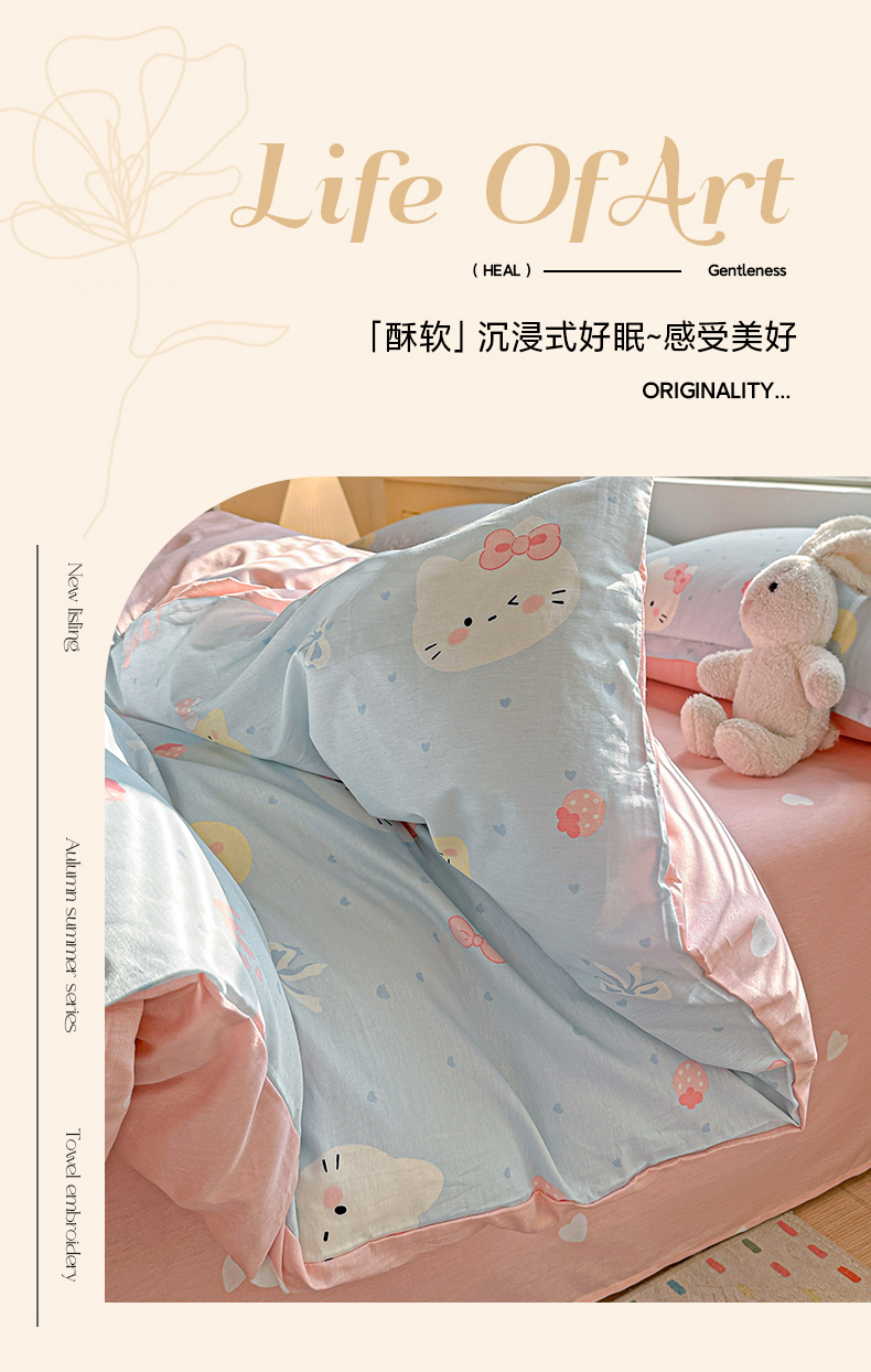 当前位置: 91家纺网 > 商品网购 > 床品套件 > 四件套 > 全棉普通四件套 > 春雨家居 2026新款全棉纯棉花ins减龄可爱小清新四件套 奶油凯蒂-兰