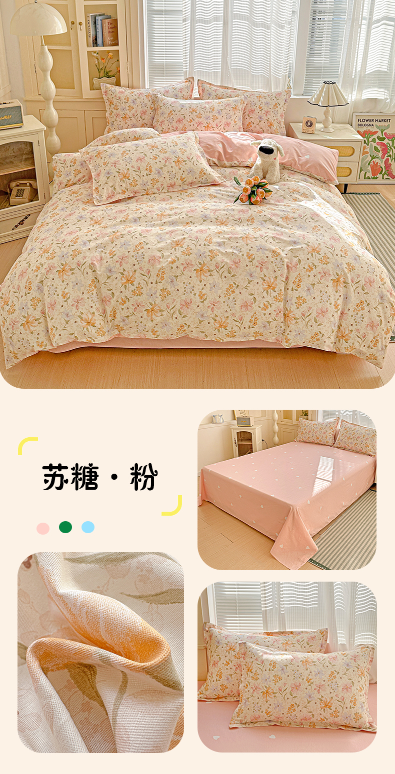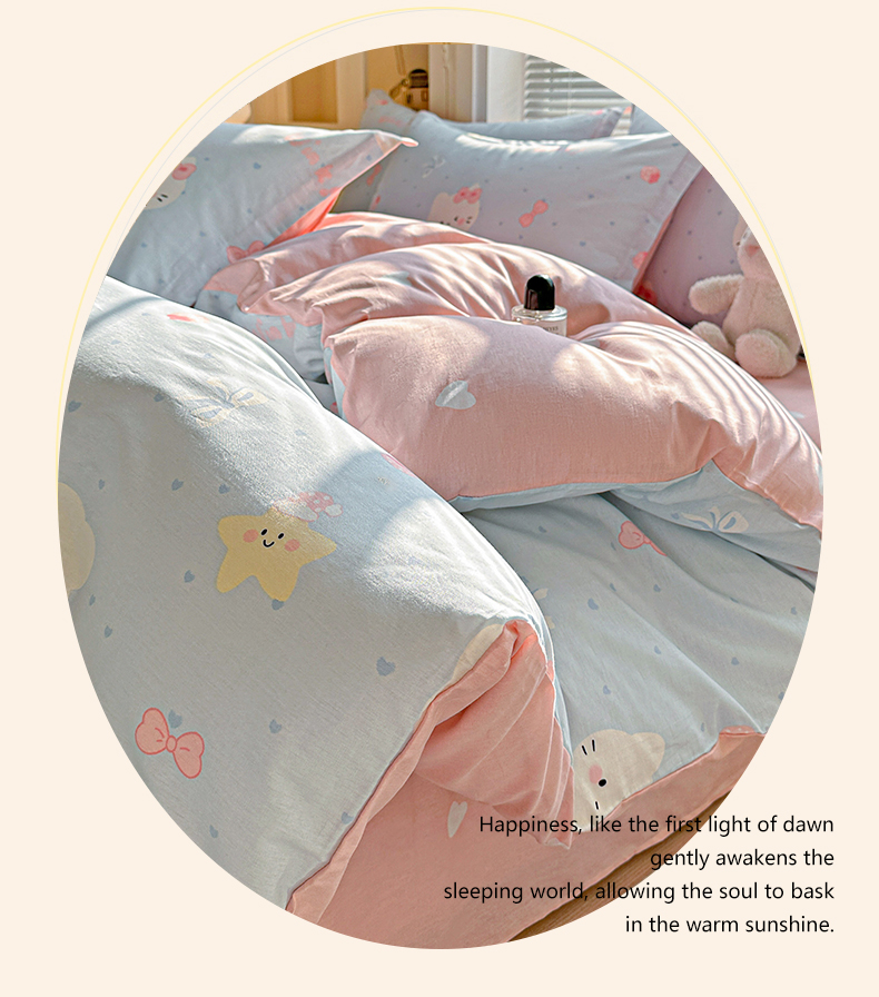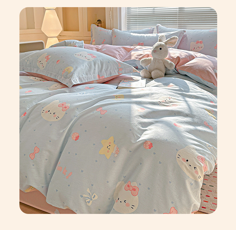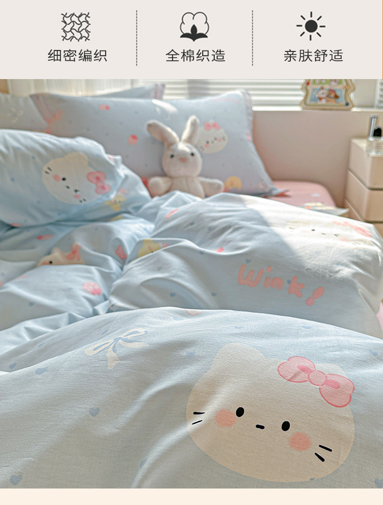 当前位置: 91家纺网 > 商品网购 > 床品套件 > 四件套 > 全棉普通四件套 > 春雨家居 2026新款全棉纯棉花ins减龄可爱小清新四件套 奶油凯蒂-兰