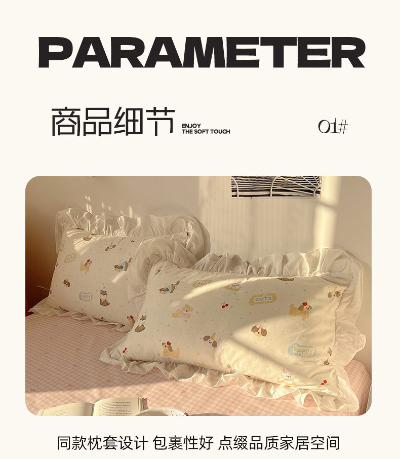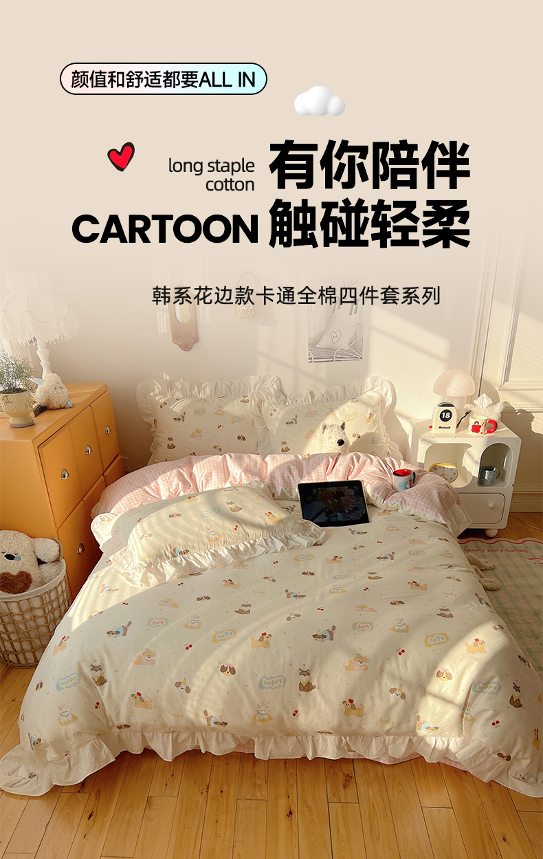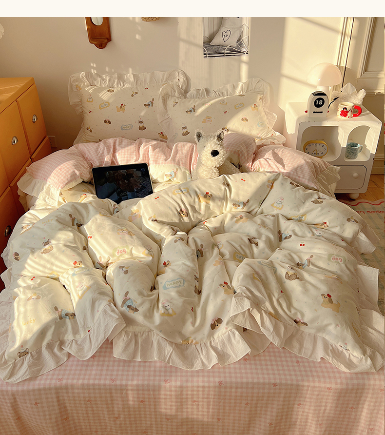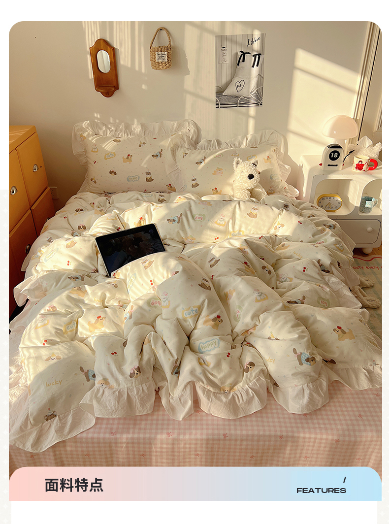 商品名称:六巷胡同 2026春夏新款韩系可爱风花边款卡通全棉四件套(第一系列) 花边汪星人派对
