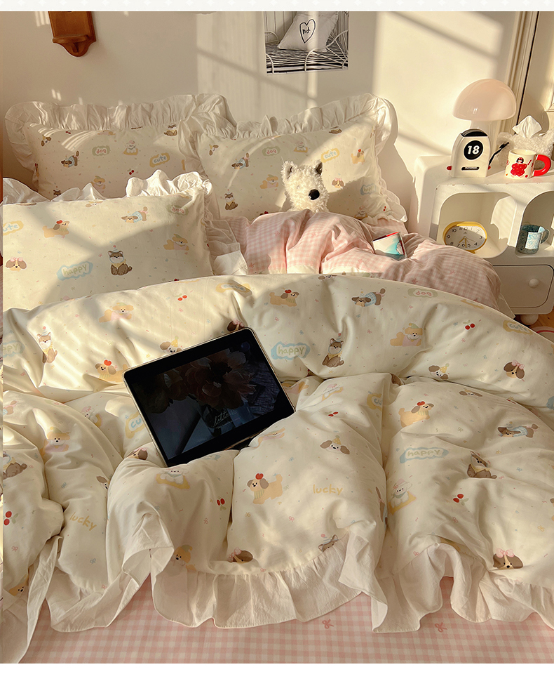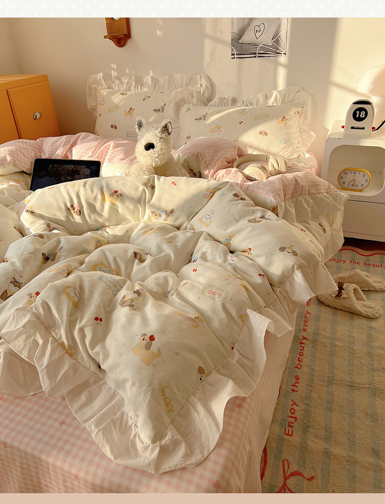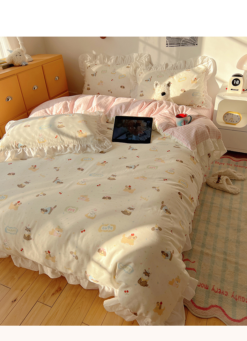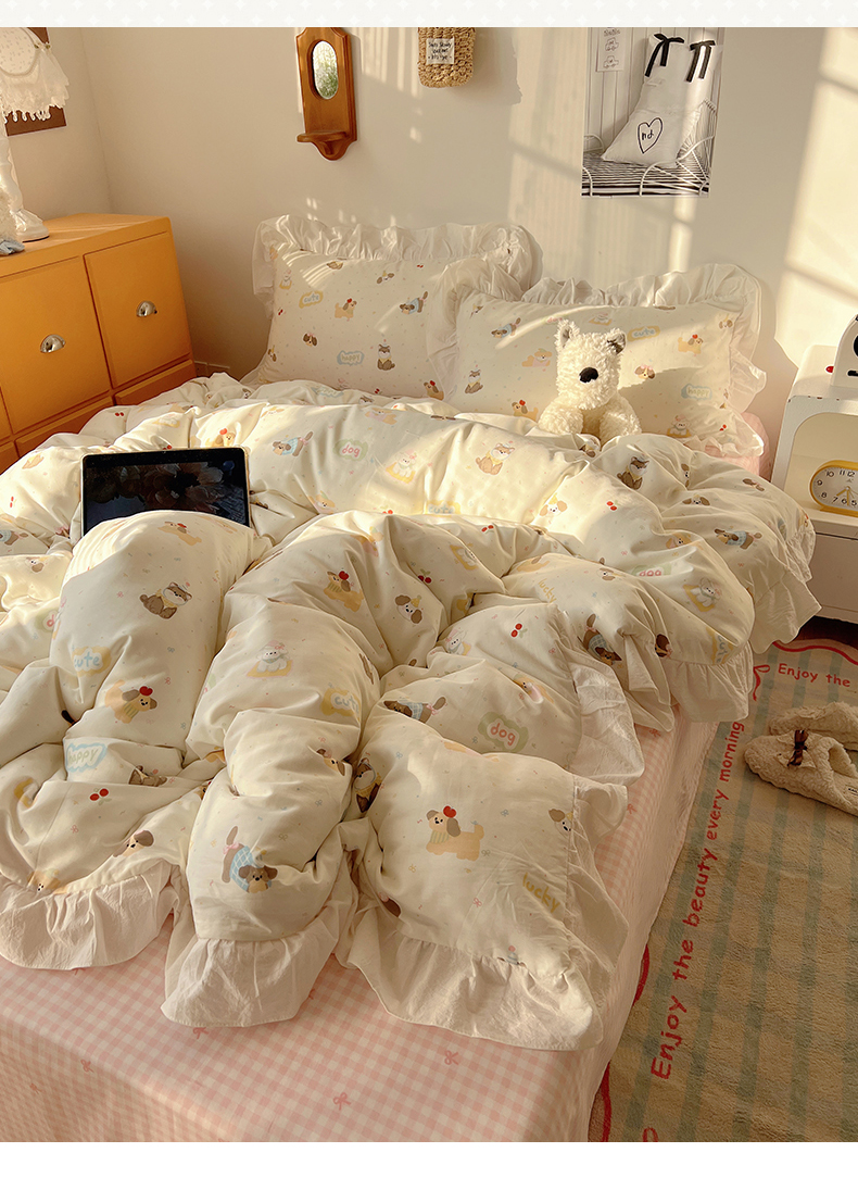 六巷胡同 2026春夏新款韩系可爱风花边款卡通全棉四件套(第一系列) 花边汪星人派对