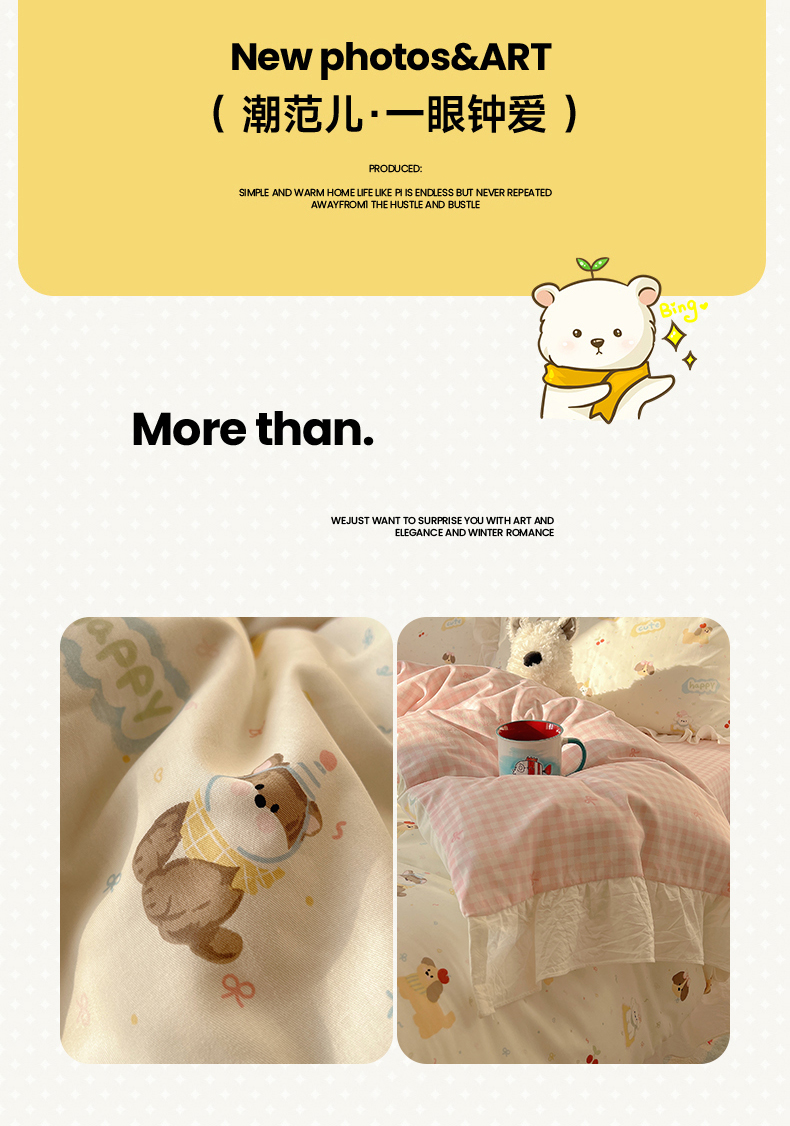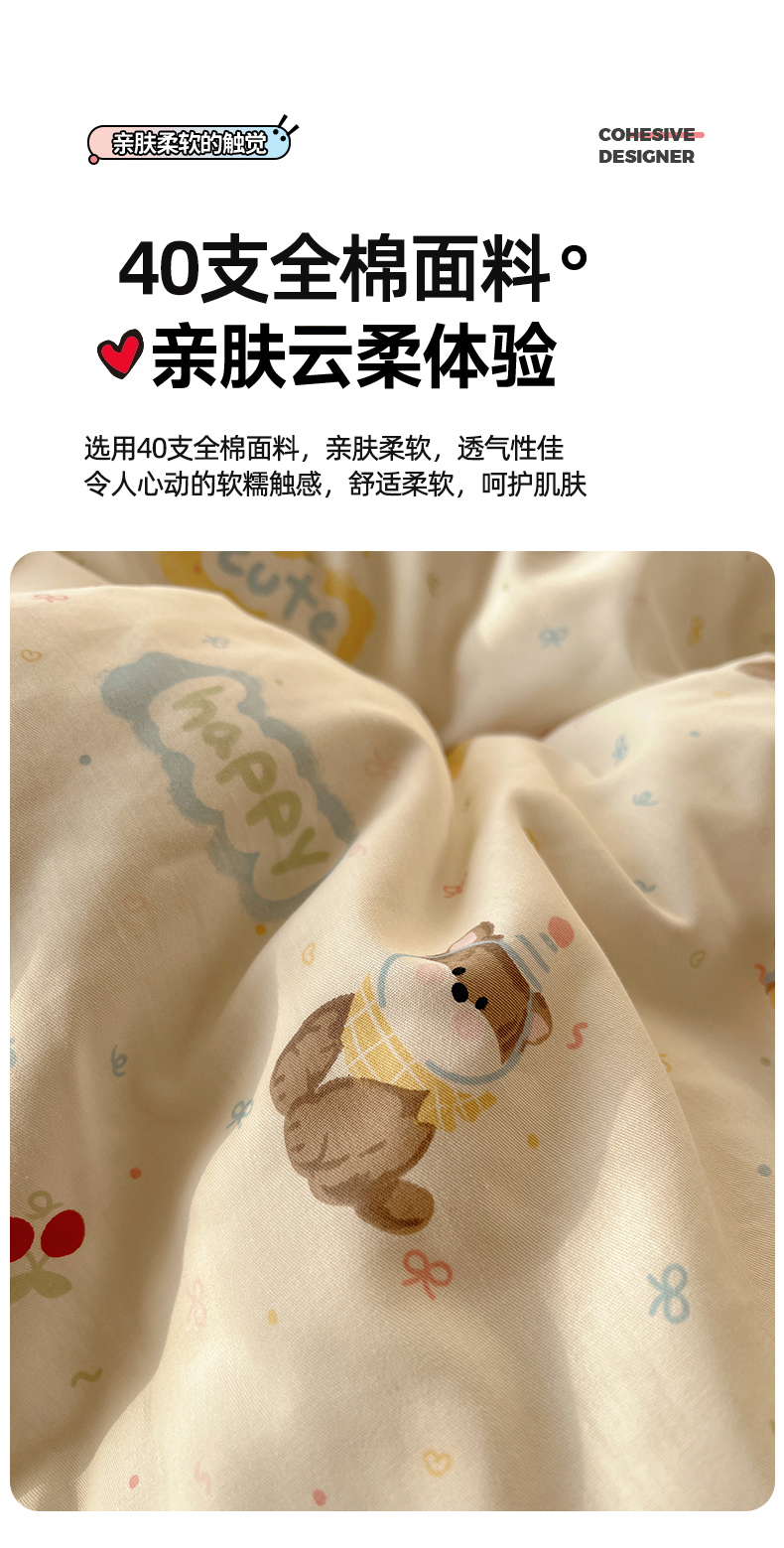 (总)六巷胡同 2025新款INS卡通童趣混搭风全棉四件套第二系,混搭-蛋糕围兜熊,混搭-奶油酣睡熊,混搭-奈斯羞羞狗,混搭-小蓝格甜点,混搭-雪糕哈皮熊,混搭-月亮睡睡熊
