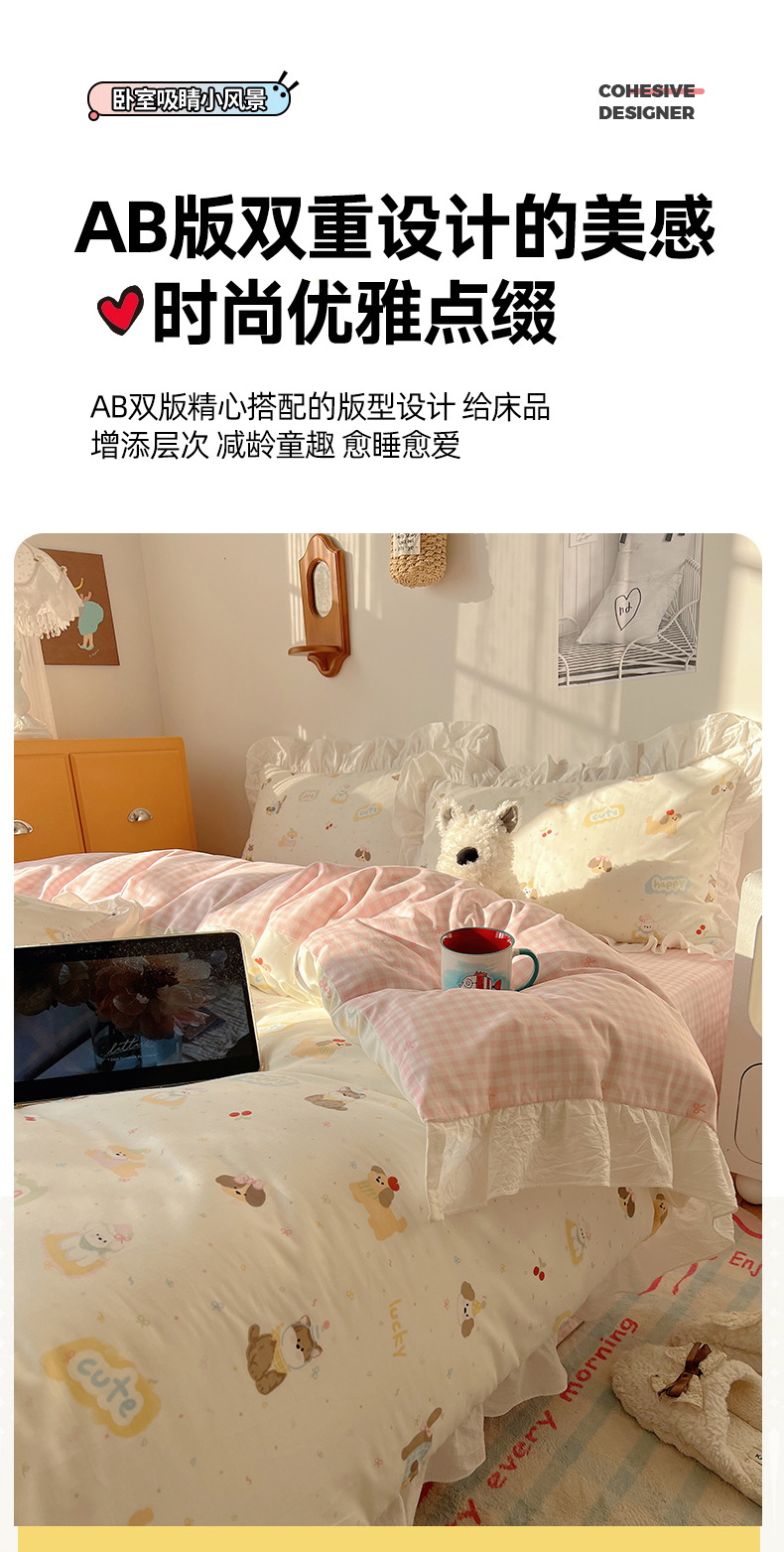 (总)六巷胡同 2025新款韩式INS卡通减龄花边款全棉四件套(第三系),花边波点嘟嘟猫,花边点点面包犬,花边调皮蔷薇狗,花边法棍滑板狗,花边粉格元气猫,花边哈喽泡芙猫,花边蓝格邦尼熊,花边蓝格插画犬,花边泡芙萌趣狗,花边森林音乐会,花边仙人掌粉象,花边熊熊猫咪崽,花边郁金香狗狗
