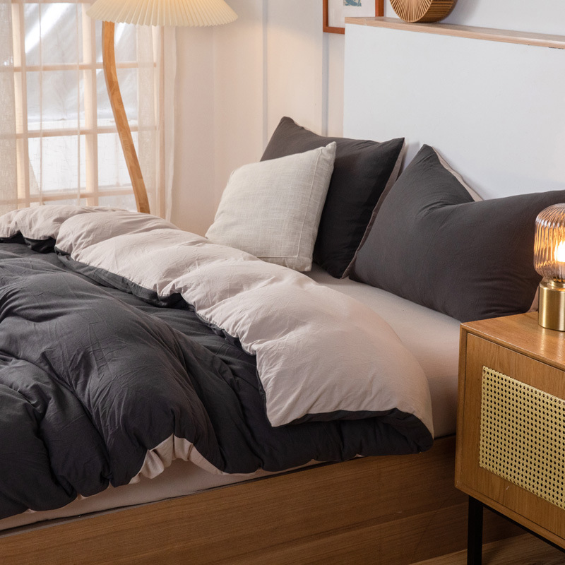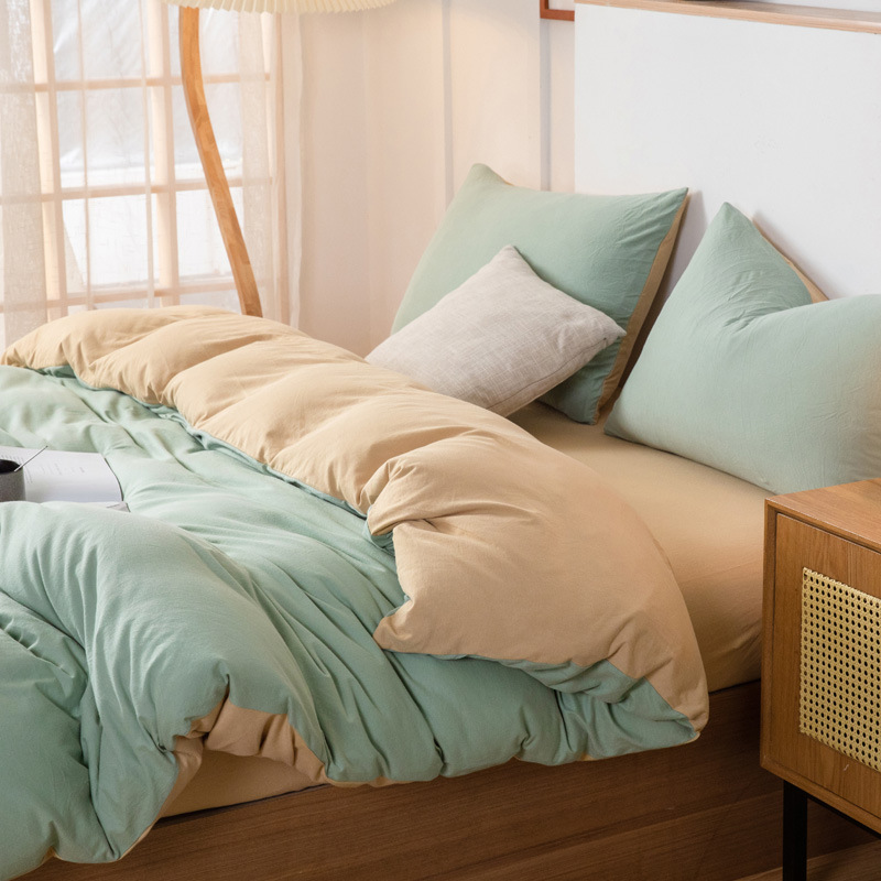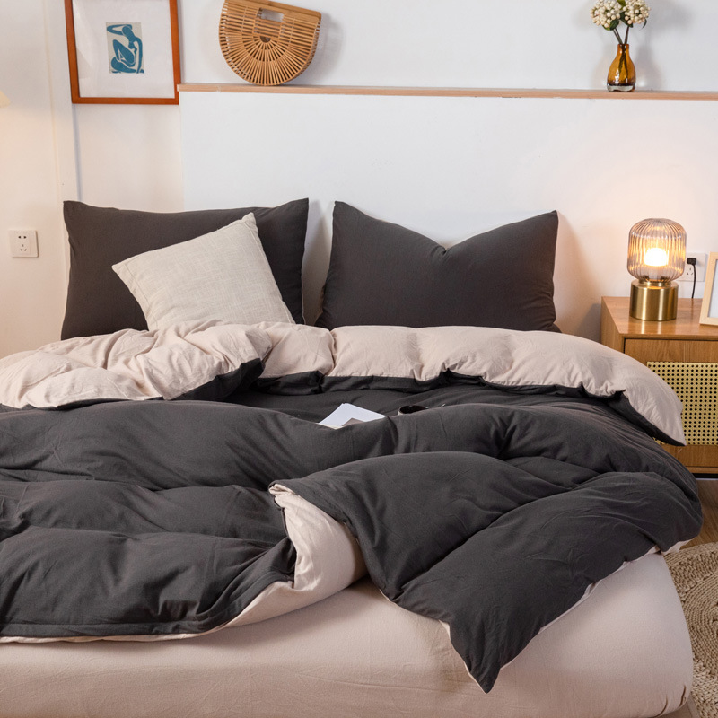 当前位置: 91家纺网 > 商品网购 > 床品套件 > 四件套 > 其它四件套 > 良品汇馆 2026【双拼天竺棉四件套】针织棉四件套良品双拼天竺棉床品套件柔软针织件套 古铜+奶茶 双拼
